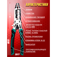 Пассатижи многофункциональные с фиксатором 10 в 1 и 5 в 1 - это профессиональный и универсальный слесарно-монтажный инструмент, в котором объединены функции таких ручных инструментов как плоскогубцы, бокорезы, круглогубцев, тигельных щипцов, кусачек, стриппера, кримпера, напильника и молотка. Пассатижи имеют зубчатые выемки для захвата и поворота цилиндрических деталей. Эргономические параметры пассатижей, показали превосходство над моделями форм фактора 160, 180, 200 мм. Плоскогубцы изготовлены из высококачественной стали, и полимерных диэлектрических материалов рукояти, обеспечивающих прочность и долговечность. Эргономичная конструкция ручек с анти-скользящим покрытием обеспечивают комфортное использование и надежный захват. Плоскогубцы комбинированные отлично подойдут для проведения строительных и слесарных работ - зачистка, резка проводов, скручивание, снятие изоляции, намотка проволоки на наконечники губок, обжим клемм, перекусывания гвоздей, снятие стопорных колец, ровнять и загибать кромку металла, для хомутов, закручивание, откручивание гаек, болтов, винтов, они аналогичные модели от Bahco, Kraftool, Stanley, Knippex и так далее. Плоскогубцы шарнирно губцевого типа незаменимы на стройке при ремонте дома, авто и шиномонтаже. Легкий вес и компактный размер, позволяют применять комбинированный инструмент во многих областях как профессиональной деятельности, так и в условиях активного отдыха, например, носить их с собой в дорожном рюкзаке туриста и рыболова или просто в бардачке машины. Одинаково удобны и комфортны в использовании как для мужчин так и для женщин. Набор плоскогубцев станет отличным подарком на праздник и даже без повода, Вашему мужчине, папе или сыну. Каждый инструмент проходит тщательный контроль качества на официальном заводе производителе, и на нашем складе, что гарантирует качество для каждого нашего покупателя.