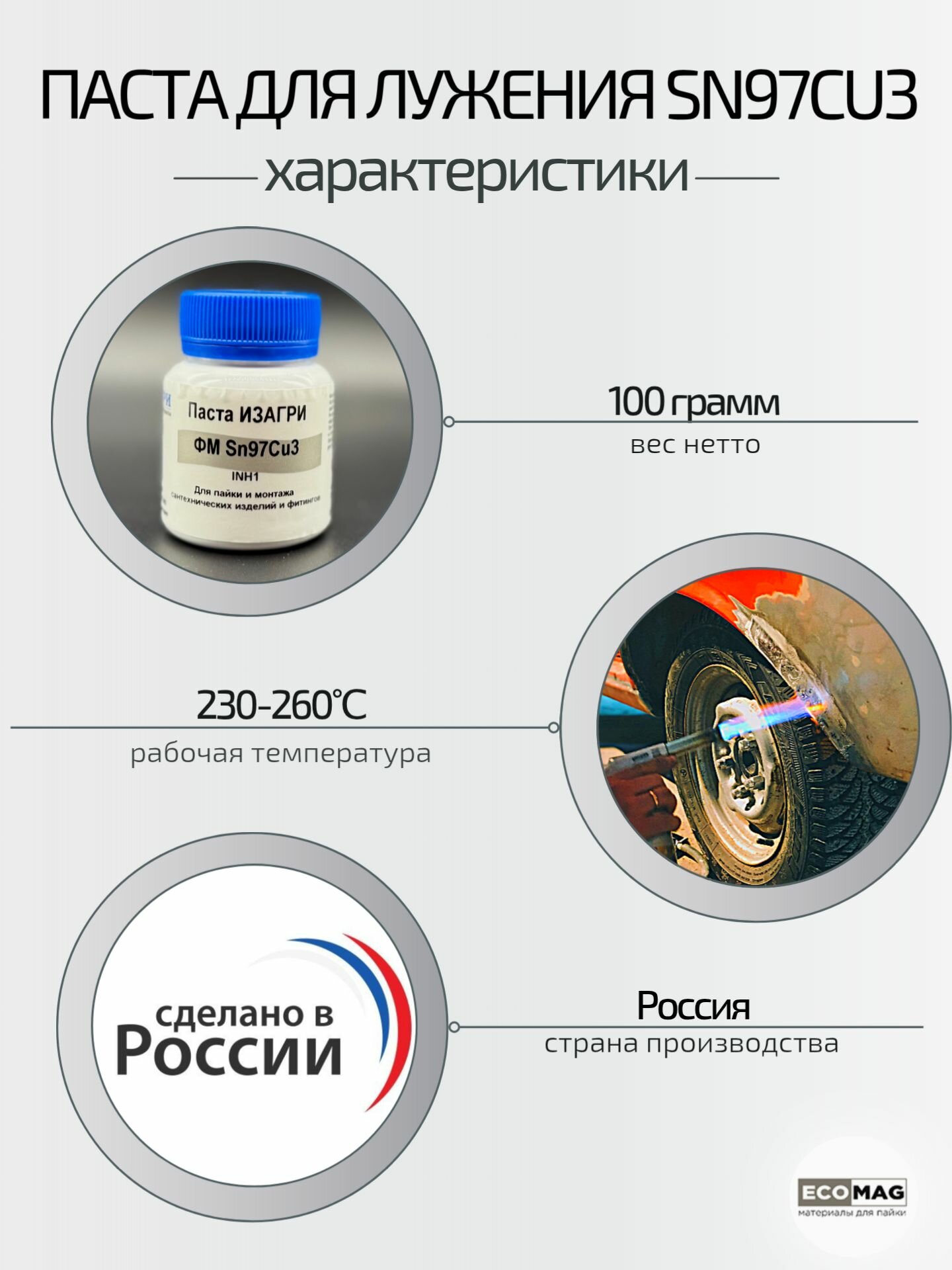 Купить Паста для лужения кузова и пайки меди бессвинцовая Sn97Cu3, 100 грамм с доставкой по всей России. Паста для лужения кузова и пайки меди бессвинцовая Sn97Cu3, 100 грамм: сравнение цен, характеристики, фото, актуальное наличие и цены.