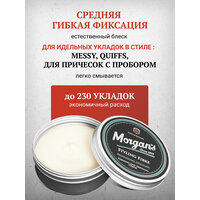 - средство для мужской укладки волос в формате пасты. Формирует и определяет прическу. Отлично подходит как для беспорядочных messy стилей, так и для причесок с пробором и QUIFFS. Простое в использовании средство. Средняя гибкая фиксация. Аромат винтажного одеколона.