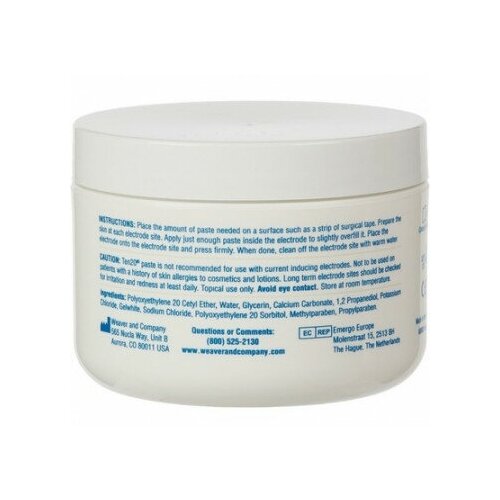 Паста для крепления чашечковых электродов к коже головы для кратковременного мониторинга. Предназначен для фиксации чашечковых электродов на коже пациента и обеспечения хорошего проведения электрического сигнала. Параметры: - температура каплевыпадения не менее: 43 град. Проводящая паста Ten20 В состав проводящей пасты Ten20входят: полиоксиэтилен 20 цетиловый эфир, вода, глицерин, карбонаткальция, 1.2 - пропандиол, хлорид калия, хлорид натрия, полиоксиэтиленсорбит 20, метилпарабен, пропилпарабен. Назначение: Для использования при нейромониторинге в сочетании с нейродиагностическими электродами, не содержащими гель, например, для исследований ЭЭГ, вызванных потенциалов, полисомнографии, множественном тесте латенции косну (MSLT). Применение: Не наносите пасту непосредственно на электрод или на голову. Поместите немного пасты на поверхность материи типа полоски хирургического пластыря. Не используйте слишком много пасты. Площадь нанесения пасты становится эффективным размером электрода. Это может уменьшиться межэлектродное расстояние, разность потенциалов и точность тестирования. TEN20 в тюбике: Для перемещения пасты в верхнюю часть тюбика нажмите на его нижнюю часть. Выдавить пасту можно нажатием большого пальца на верхнюю часть тюбика. TEN20 в банке: Для забора пасты используйте шпатель. Наносите пасту с помощью марли или пластыря. Адгезивной способности проводящей пасты Ten20 обычно достаточно для удержания электродов на коже и обеспечения проводимости внейродиагностических исследованиях. Вначале подготовьте кожу с помощью абразивного геля типа NuPrep. Используйте чашечковых электроды с отверстием в середине. Нанесите достаточное количество пасты внутрь электрода ЭЭГ с небольшой. Поместите электрод на требуемое место и слегка прижмите. Небольшое количество пасты может выдавиться из чашечкового электрода через отверстие. При слишком сильном надавливании из чашки выделится много пасты и электрод не будет хорошо держаться. Для фиксирования электрода уберите излишки пасты небольшим кусочком марли или бинта. Если вокруг места исследования есть волосы, то возьмите марлю размером с почтовую марку и прижмите ею электрод. Паста, выдавленная из отверстия электрода в процессе прижатия, будет удерживать марлю на электроде. Если паста не выдавилась из отверстия, то нанесите небольшое количество пасты на марлю и прижмите ею электрод для его фиксации. Если вокруг места исследования нет волос, то используйте хирургический пластырь типа Micropore шириной 2.5 см для фиксации электрода. Используйте ту же технику, как указано выше, для установки электрода на место. Используйте полоску пластыря длиной 3 - 4 см для того, чтобы накрыть им электрод и место его соединения с кабелем. Этот метод крепления эффективен в точках Fp1, Fp2 и для заземляющего электрода. Применяйте его также для любых мест, где нет волос, и для исследования лысых пациентов. A1 и A2: Приложите электроды A1 и A2 на мочку уха с использованием количества пасты, как описано выше. Направьте кабель электрода вверх и немного вперед. Убедитесь, что часть пасты выдавилась из отверстия, после чего заведите кабель за ухо и направьте его к задней части головы. Используйте более длинную полоску пластыря, чем обычно, чтобы накрыть им электрод и место его соединения с кабелем, а оставшуюся часть пластыря