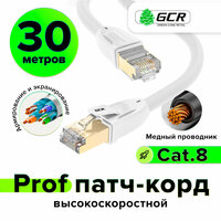 Купить Патч-корд для интернета 30м PROF LSZH S/FTP cat.8 25 Гбит/с RJ45 LAN ethernet high speed медный экранированные коннекторы контакты 24K GOLD (GCR-L306) белый с доставкой по всей России.