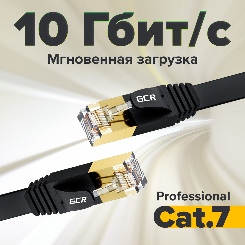 Патч-корд плоский cat.7 FTP 10 Гбит/с RJ45 LAN профессиональный компьютерный кабель для интернета медный экранированные коннекторы 24K GOLD (GCR-L304) черный 10.0м: сравнение цен, характеристики, фото, актуальное наличие и цены.