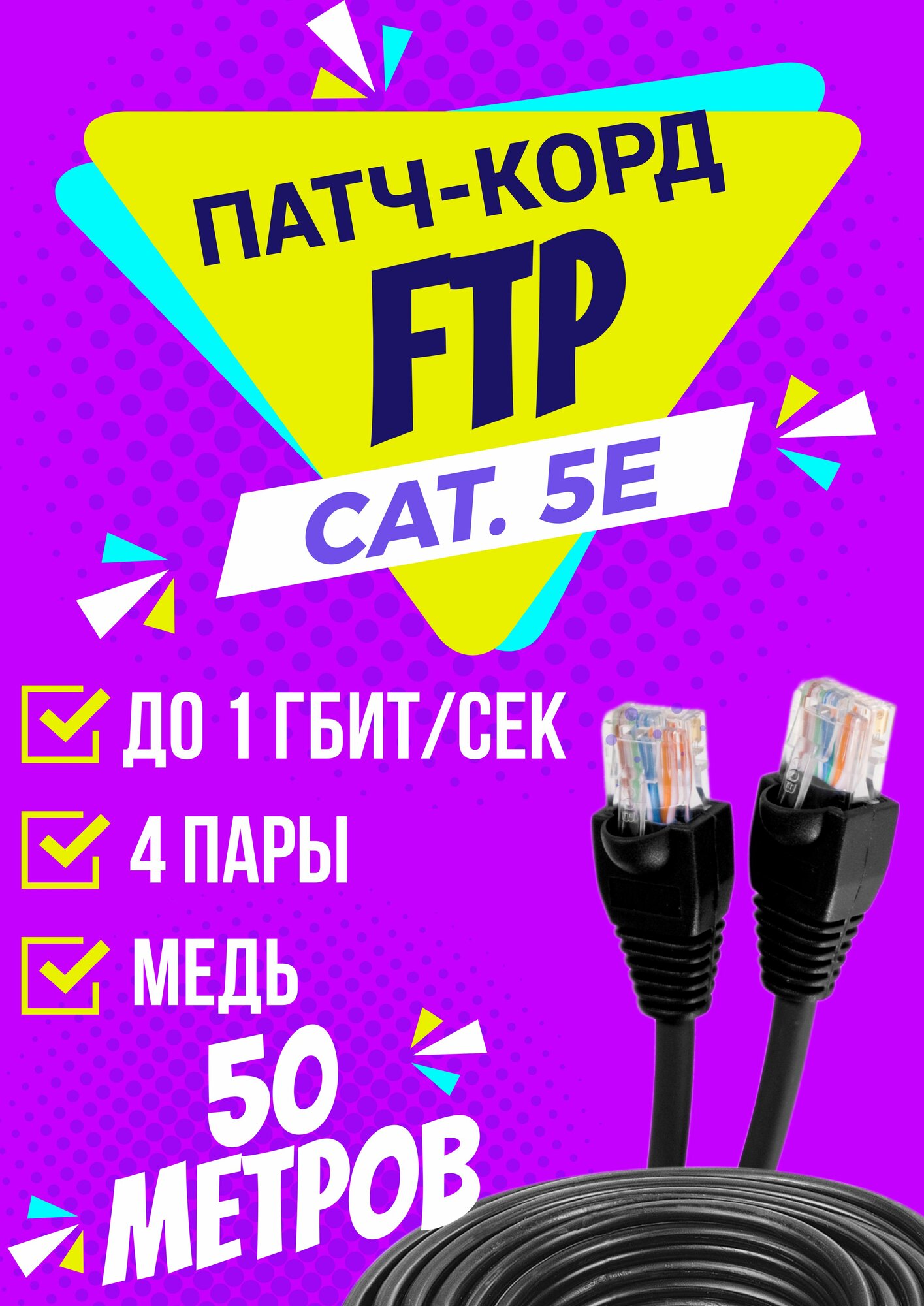 Патч корд уличный FTP 50 метров, категории 5е, RJ45 интернет кабель LAN / сетевой / Ethernet / FTP патч-корд черный: сравнение цен, характеристики, фото, актуальное наличие и цены.