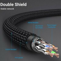 Длина: 2; Тип: Патч-корд; Категория: Cat 8; Цвет: Черный; Разъемы: RJ-45; Экран: да; Прочие особенности и свойства: Патч-корд Vention [SF/FTP/CU/кат. 8/многож./2m/Экранированный] – кабель, соответствующий категории 8 и оснащенный коннекторами RJ-45, благодаря чему может использоваться для создания многоуровневых коммуникационных сетей, а также для подключения стационарных компьютеров, ноутбуков и других устройств к Сети. Важной особенностью модели является поддержка высокой производительности – вплоть до 10 ГБит/с. Для предотвращения повреждения в результате частого подключения и отключения в конструкции разъема предусмотрено специальное резиновое покрытие, Патч-корд Vention выполнен из высококачественных материалов. Внешнее покрытие изделия отличается высокой устойчивостью к износу и повреждениям и выполнено в строгом черном цвете с синей отделкой, благодаря чему кабель не затеряется среди других проводов. Сам проводник изготовлен из меди, что обеспечивает наилучшую передачу данных. Для снижения количества шумов и помех каждая жила снабжена дополнительным изолирующим слоем из сверхвысокомолекулярного полиэтилена высокой прочности (HDPE). Длина патч-корда достигает 2 м. Изделие поставляется в прозрачной пластиковой упаковке.