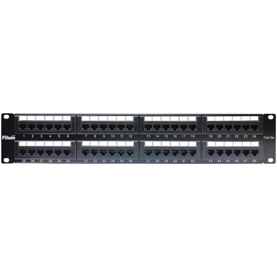 Патч-панель Filum FL-PP-5E48U2 19″, 2U, Cat 5e, 48 портов RJ45 (8p8c), неэкранированная, Dual IDC (110/KRONE): сравнение цен, характеристики, фото, актуальное наличие и цены.
