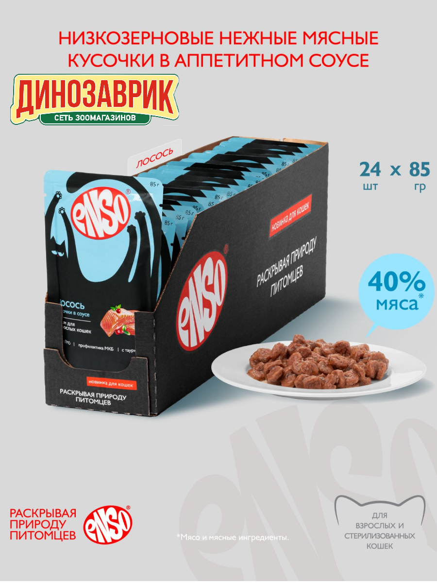 Купить Паучи Enso полнорационный корм для взрослых кошек кусочки в соусе с лососем 24 шт х 85 г с доставкой по всей России. Паучи Enso полнорационный корм для взрослых кошек кусочки в соусе с лососем 24 шт х 85 г: сравнение цен, характеристики, фото, актуальное наличие и цены.
