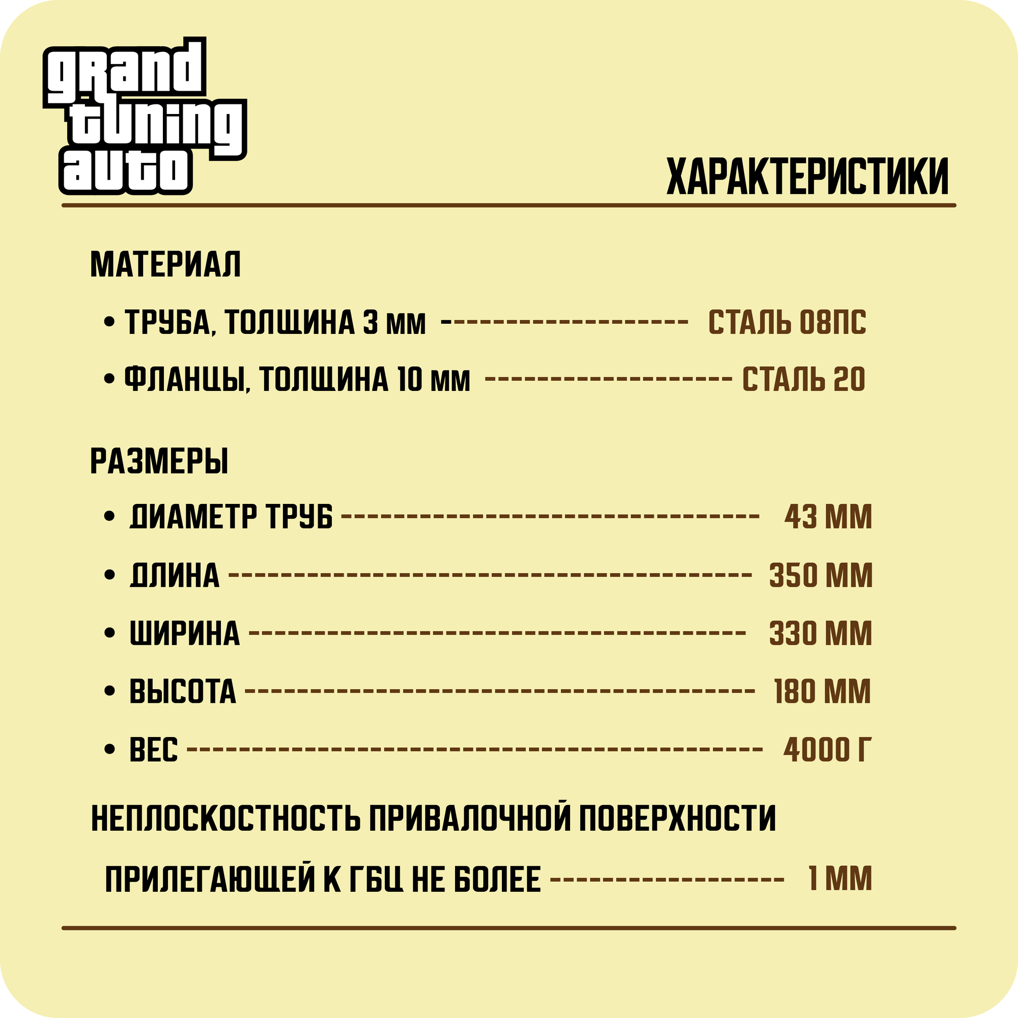 Габаритные размеры: диаметр первичных труб 42,3 мм, толщина стенки 3 мм. Не плоскостность поверхности плиты, прилегающей к ГБЦ не более 1 мм.