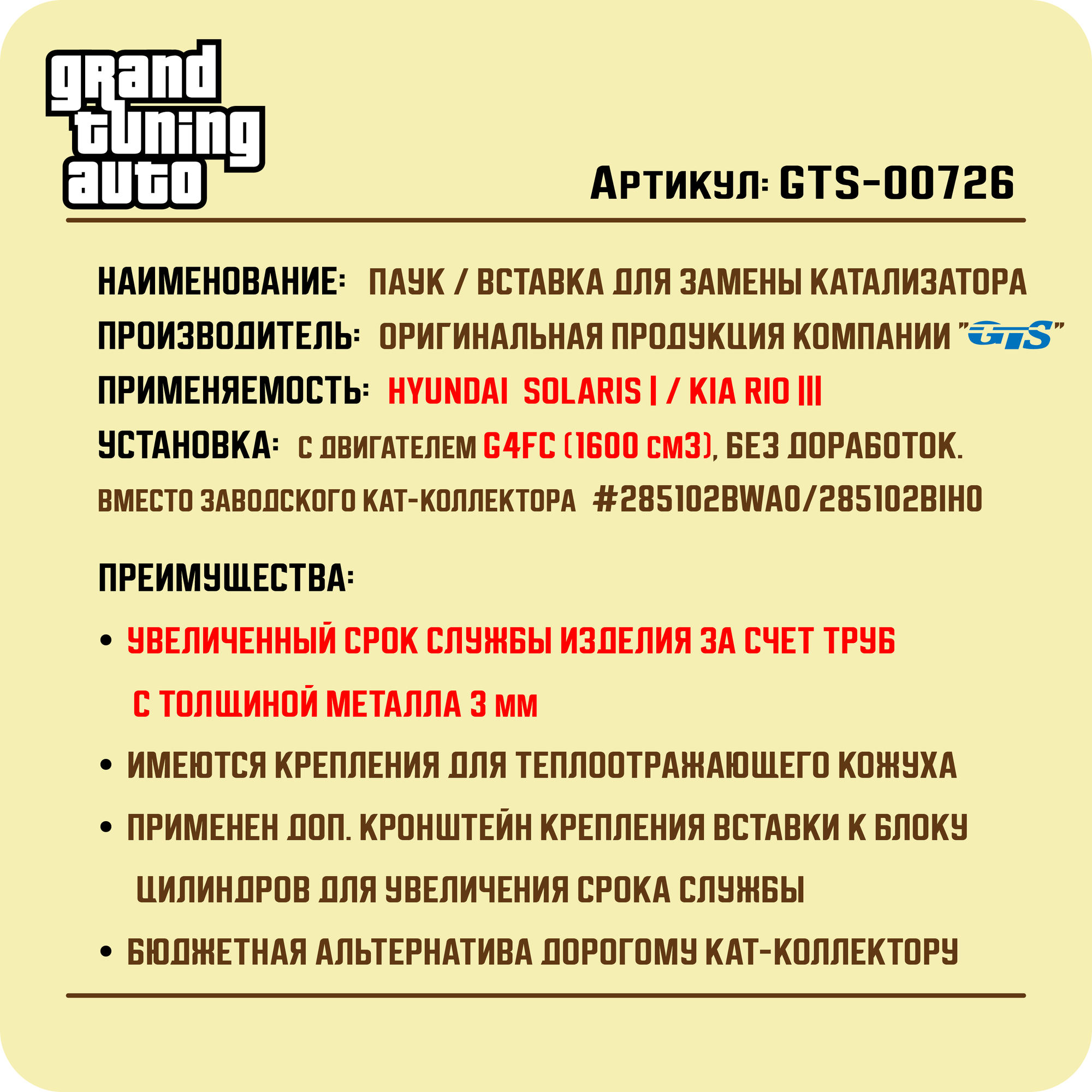 Паук GTS вставка замены катализатора/выпускной коллектор Hyundai Solaris 1 / KIA Rio 3 1.6л. с двигателем G4FC