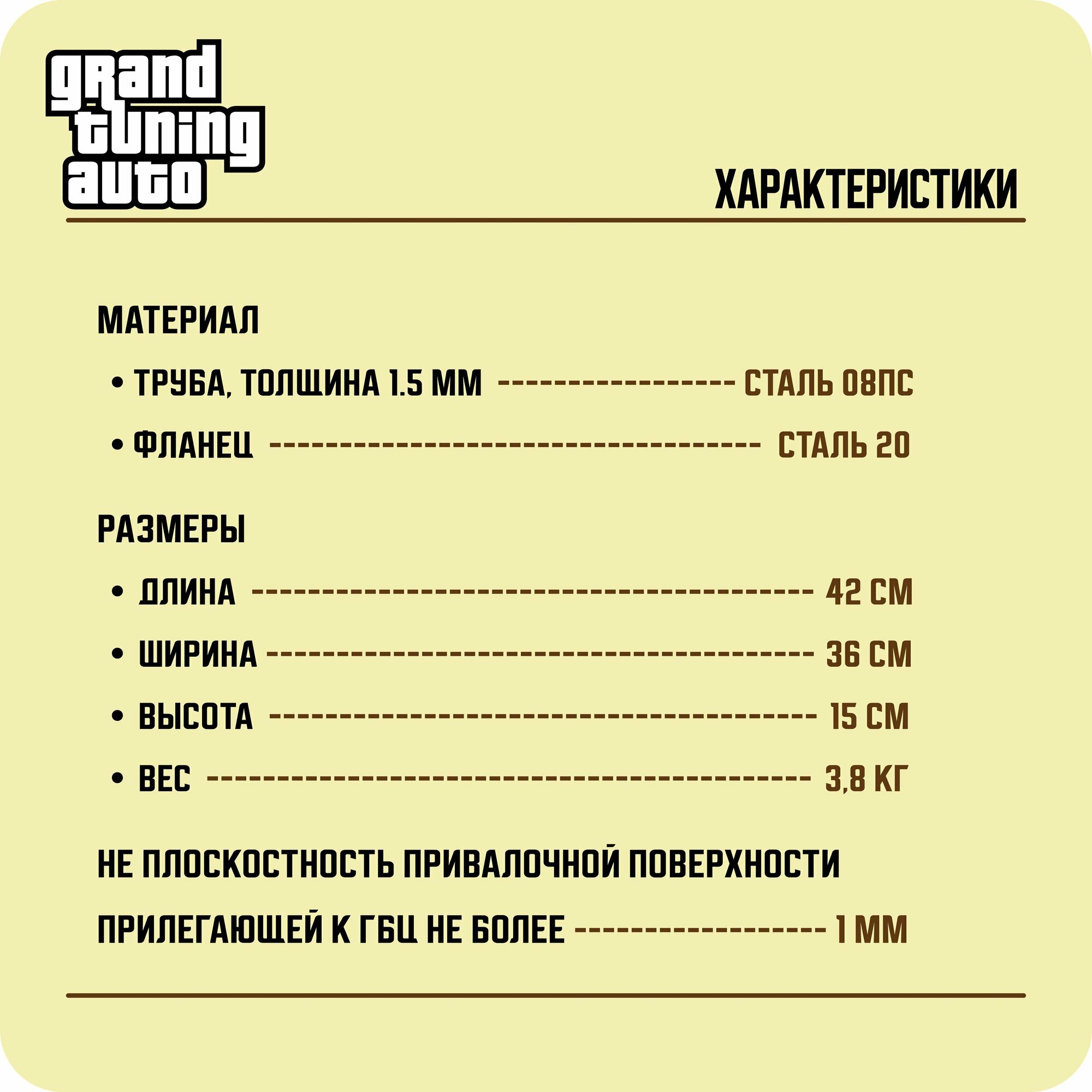 Габаритные размеры: диаметр первичных труб 38 мм, толщина стенки 1.5 мм. Не плоскостность поверхности плиты, прилегающей к ГБЦ не более 1 мм.