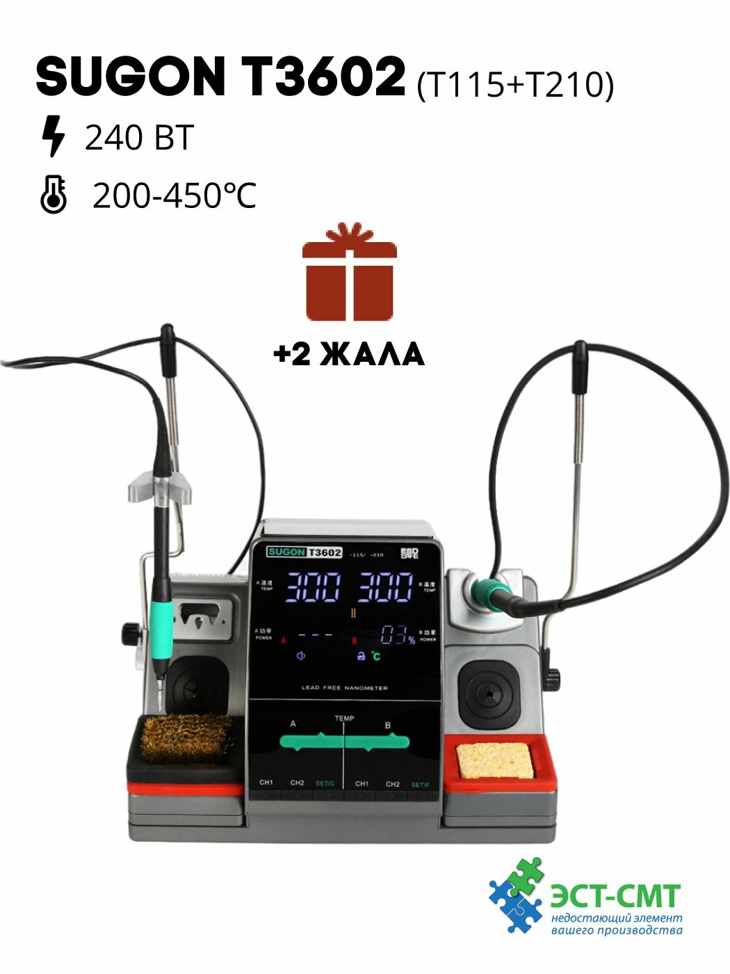 1.Силовой блок Т36 2.Паяльник С115. 3.Наконечник C115-K. 4.Изоляционный коврик Sugon 213. 5.Активатор жал. 6.Щетка для очистки жал. 7.Провод заземления. A814