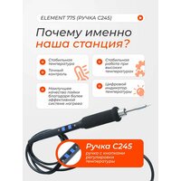 Паяльная станция ELEMENT 775 (ручка С245, 60Вт) — это мощное устройство, идеально подходящее для профессиональных задач пайки, требующих высокой мощности, точности и надежности. Оснащенная мощностью 60 Вт, она обеспечивает быстрое нагревание и стабильную работу при высоких температурах, что делает ее отличным выбором для сложных паяльных работ. Станция оснащена удобным и эргономичным паяльником с современным жалом C245, которое обеспечивает исключительную точность и долговечность. Быстрый разогрев жала за 2 секунды до 350°С. Высокая скорость поддержания стабильности температуры. Паяльный набор обеспечивает наилучшее качество пайки благодаря более эффективной системе нагрева, а режимы сна и гибернации помогают продлить срок службы жал. Паяльная станция ELEMENT 775 (ручка С245, 60Вт) - идеальное решение для радиолюбителей, инженеров и специалистов в области электроники, требующих качественного и надежного инструмента для повседневной работы.