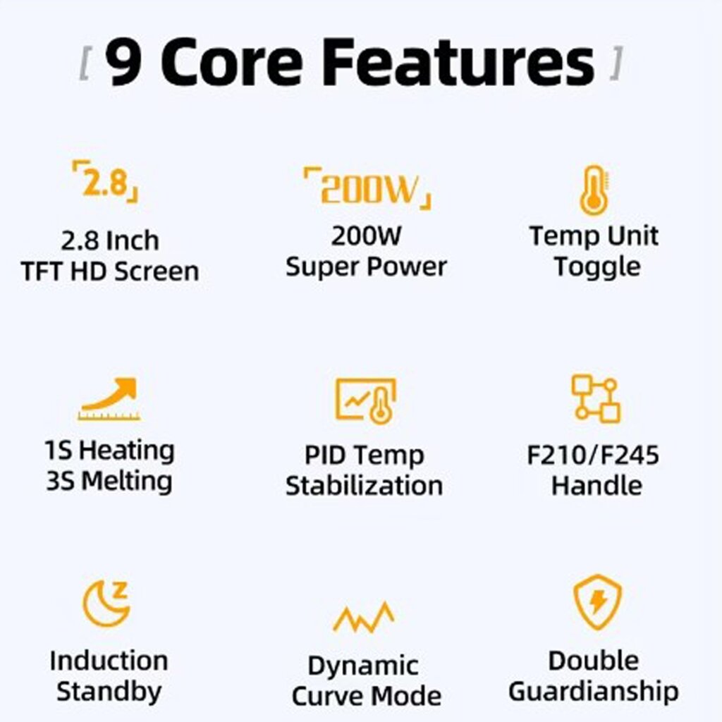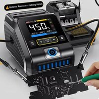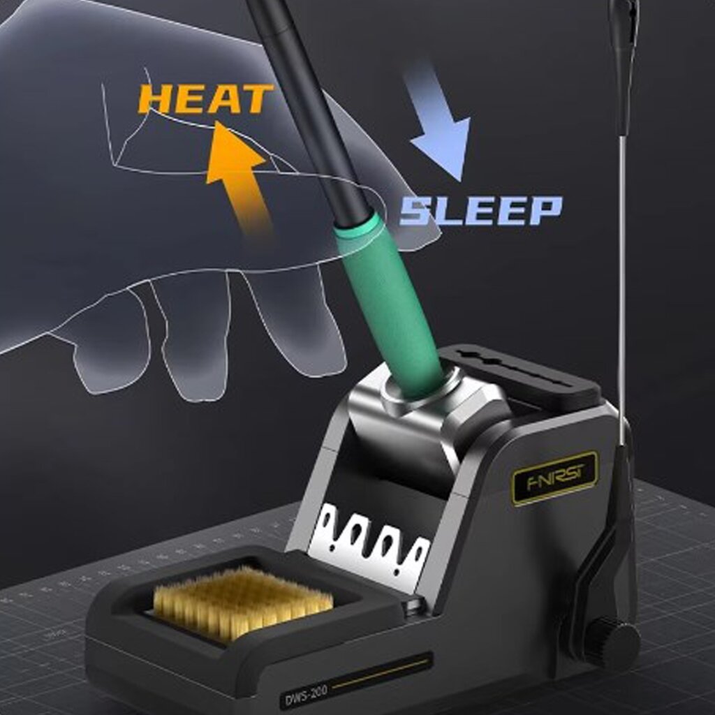 DWS-200 это мощная прецизионная паяльная станция мощностью 200 Вт, выпущенная FNIRSI. Это широко используемый ручной инструмент в процессах электронной пайки. Этот продукт оснащен встроенным мощным трансформатором из чистой меди, подходящим для входного напряжения 100 240 В и максимальной мощностью 200 Вт. Поддерживает преобразование из чтобы , регулируемый температурный диапазон 100. ~450 /212 ~842 . Он также поддерживает 3 предустановленных значения температуры и может быть подключен к подставке для паяльника для индукции в режиме ожидания. Используйте режим динамической температурной кривой, чтобы попробовать данные мониторинга.