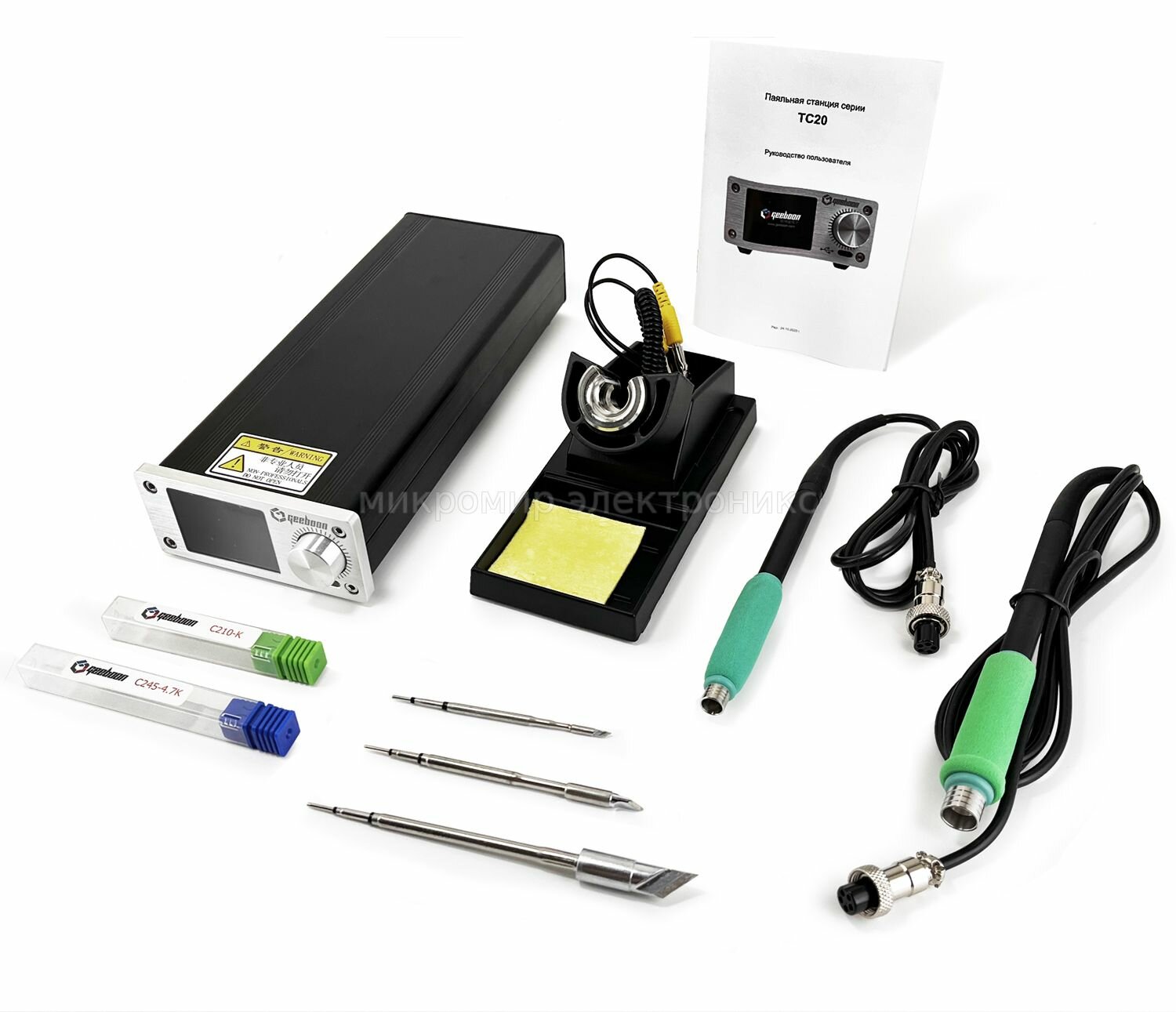 Паяльная станция в комплекте с паяльником T210, Паяльник T47, Подставка, Жало C210-k, C245-k, C470-K, Инструкция на русском языке