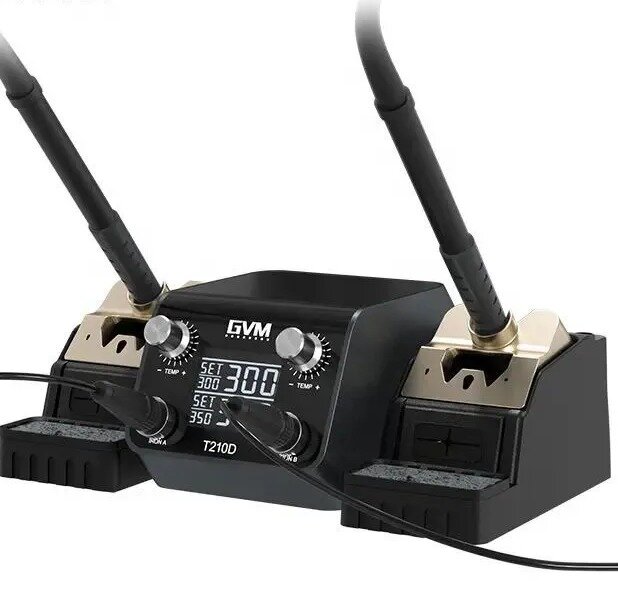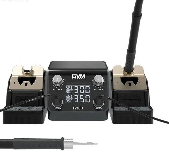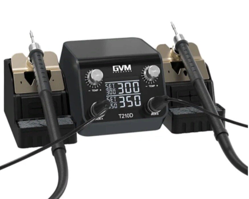 Купить Паяльная станция GVM T210D двухканальная (два паяльника T210, жала C210) с доставкой по всей России. Паяльная станция GVM T210D двухканальная (два паяльника T210, жала C210): сравнение цен, характеристики, фото, актуальное наличие и цены.