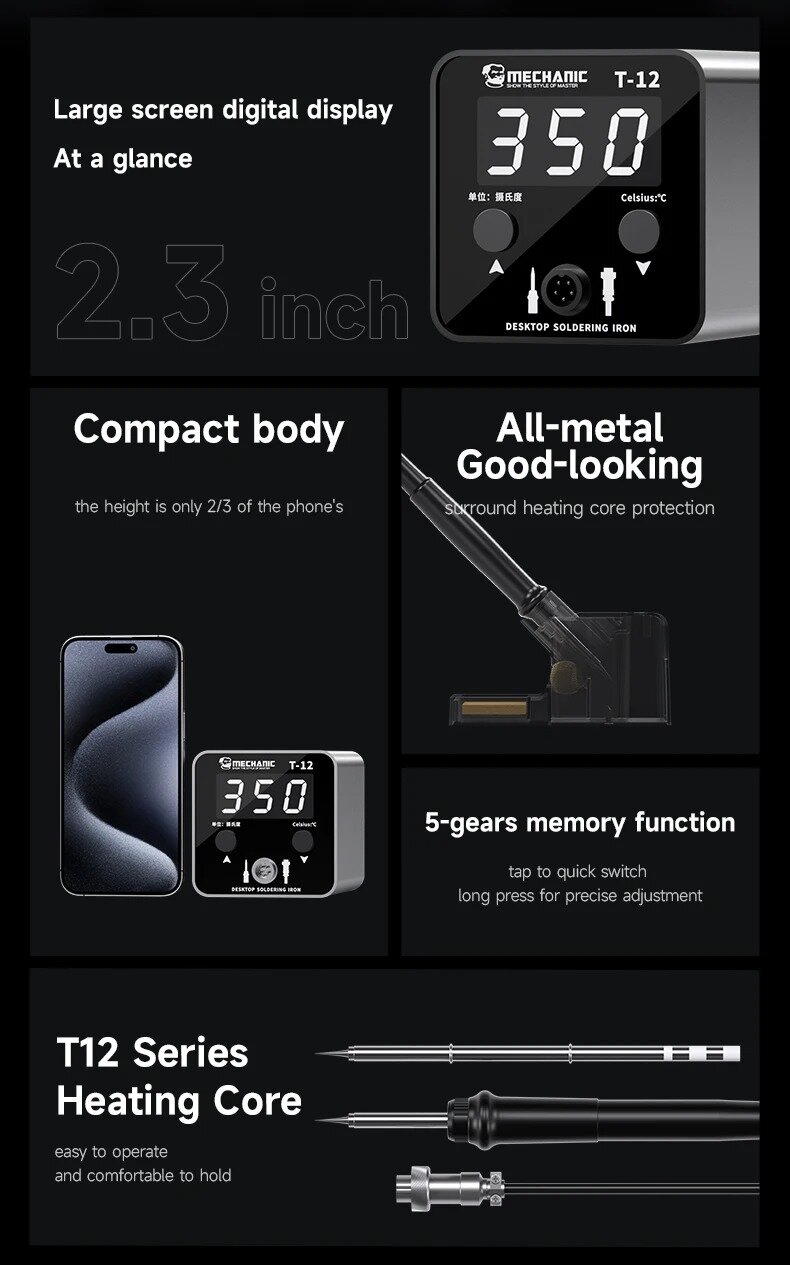 Купить Паяльная станция Mechanic T-12 (паяльник, жала T12) с доставкой по всей России. Паяльная станция Mechanic T-12 (паяльник, жала T12): сравнение цен, характеристики, фото, актуальное наличие и цены.