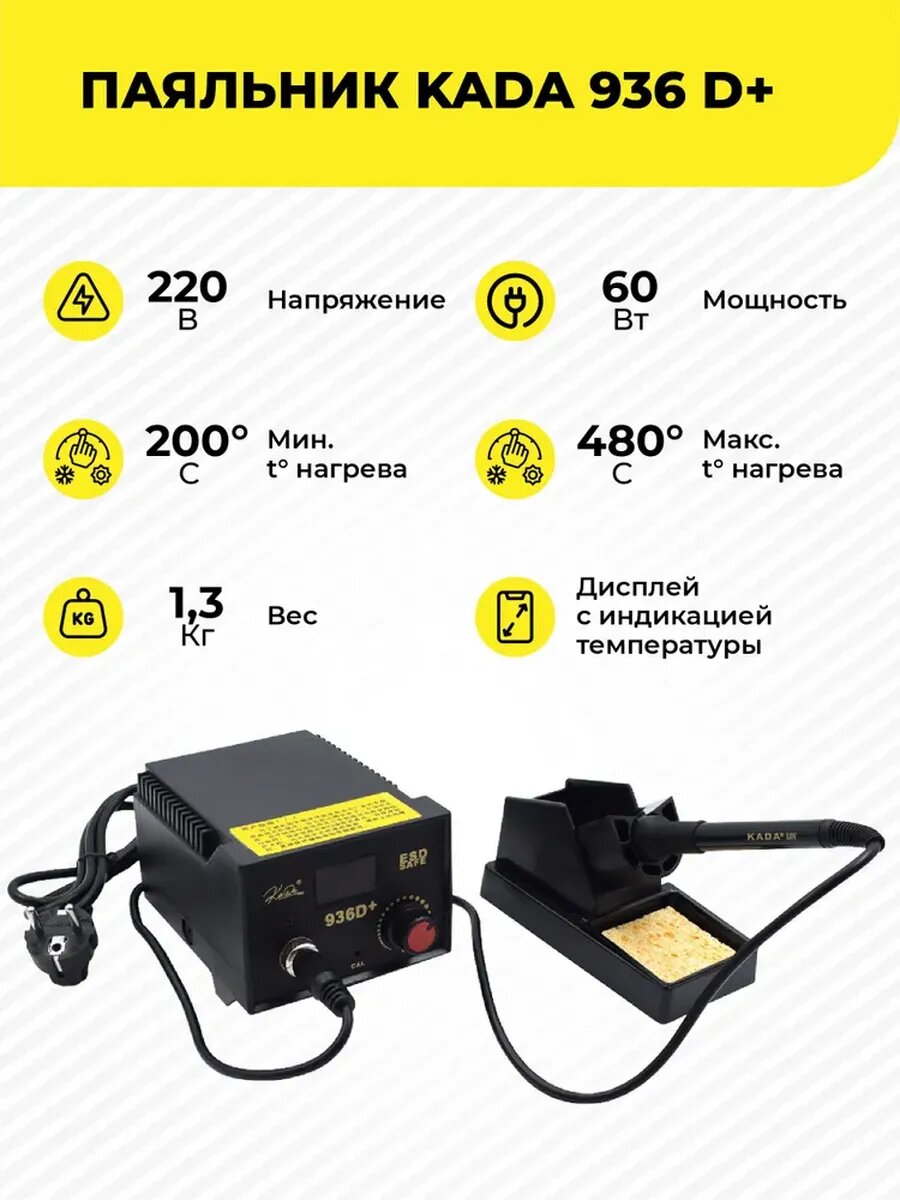 Купить Паяльная станция-паяльник KADA 936D+ 60 В с доставкой по всей России. Паяльная станция-паяльник KADA 936D+ 60 В: сравнение цен, характеристики, фото, актуальное наличие и цены.