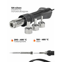 Станция паяльная KADA 8892D — это мощное и многофункциональное устройство, обладающее мощностью 240 Вт, которое идеально подходит как для профессионалов, так и для любителей. В комплекте с этой станцией вы найдете 11 шт аксессуаров, которые значительно расширят ваши возможности в пайке и ремонте. В набор входят: отвертка, пинцет, медный провод, припой, оплетка, два жала для паяльника, нагревательный элемент фена и три насадки для фена. Это делает KADA 8892D универсальным инструментом для выполнения различных задач. Паяльник имеет диапазон температур от 200 до 480 градусов, что позволяет работать с различными типами материалов. Фен же обеспечивает скорость потока воздуха до 120 л/мин и диапазон температур от 100 до 480 градусов, что делает его идеальным для термоусадки и других задач, требующих точного контроля температуры. Станция KADA 8892D — это надежный выбор для качественной и эффективной пайки!