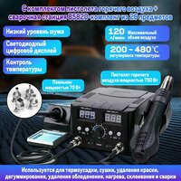 Купить Паяльная станция с феном и паяльником набор-8582D,220V 800W, Цифровой дисплей с двойным экраном, регулировка температуры,8 видов аксессуаров с доставкой по всей России.
