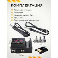 Купить Паяльная станция, 600Вт, керамический нагреватель, поток воздуха до 120 л/мин, черный с доставкой по всей России.