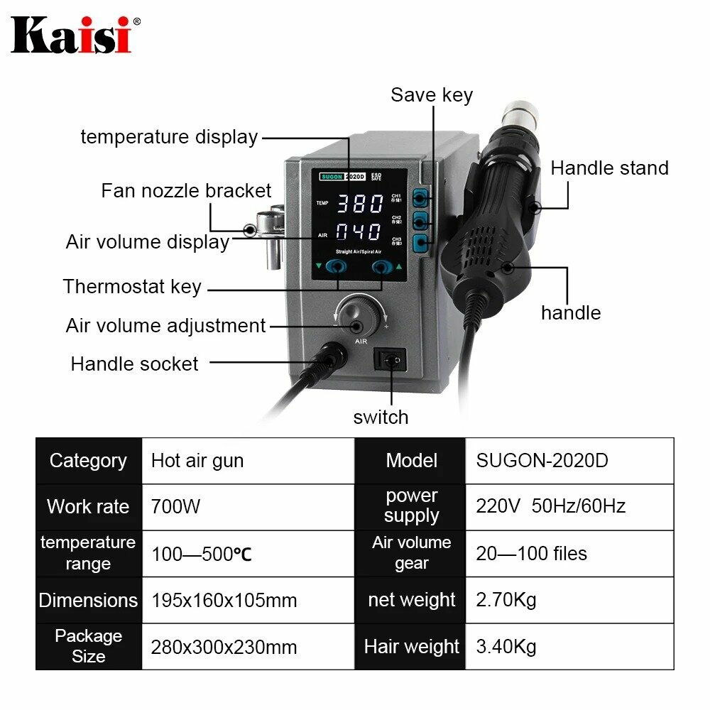 SUGON 2020D 700W паяльная станция с термофеном 110/220V Бессвинцовая паяльная станция Телефон PCB ремонт чипов BGA SMD паяльная станция