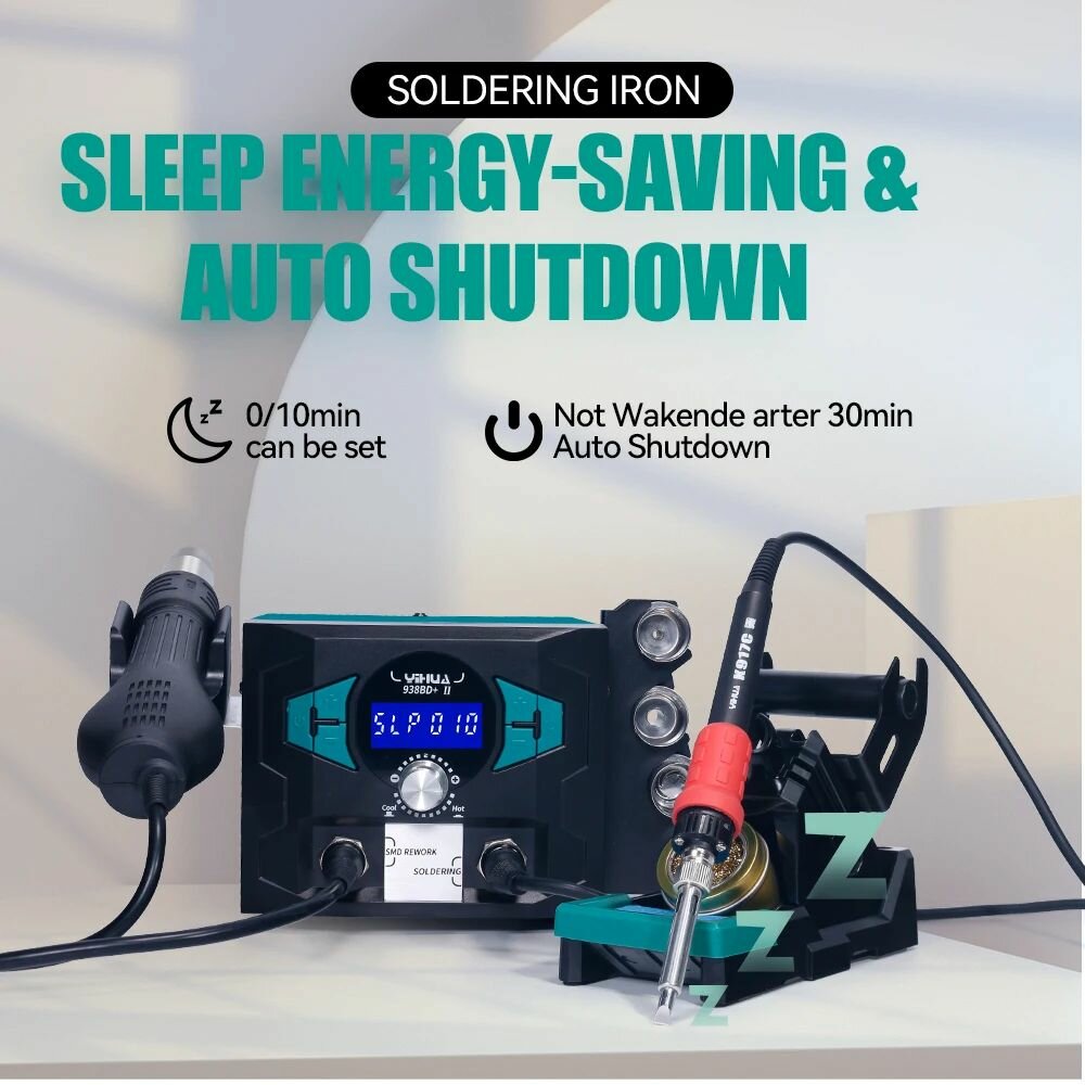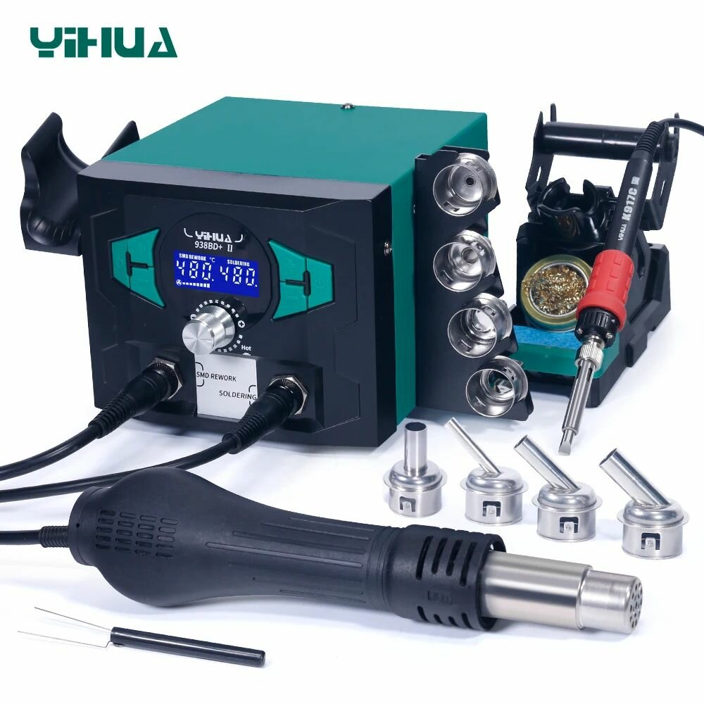 Купить Паяльная станция Yihua 938BD+-II, паяльник 200.480C, фен турбинный 100.480C, 810вт с доставкой по всей России.