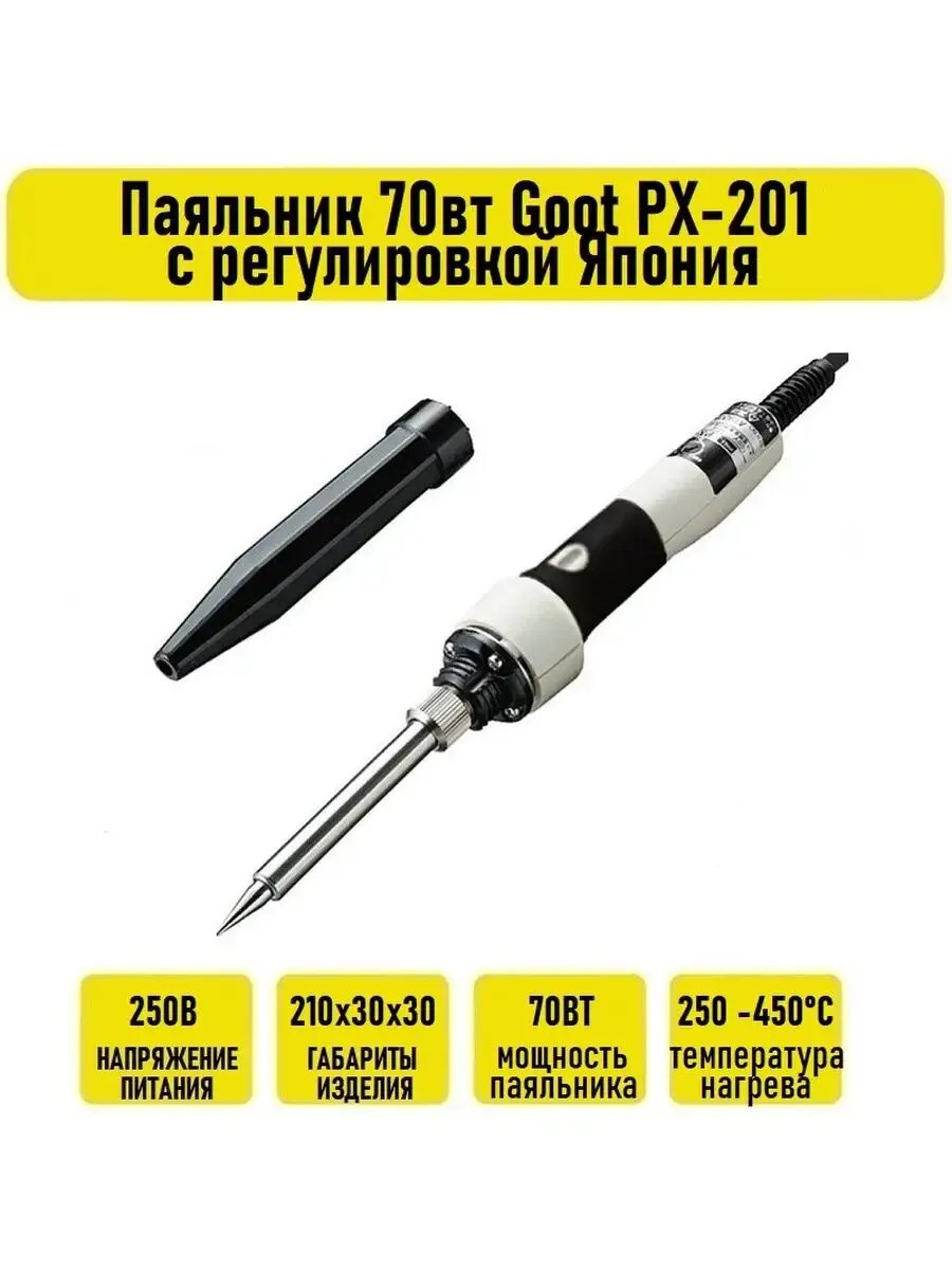 Паяльник Goot PX-201, с регулировкой температуры, 70 Вт: сравнение цен, характеристики, фото, актуальное наличие и цены.