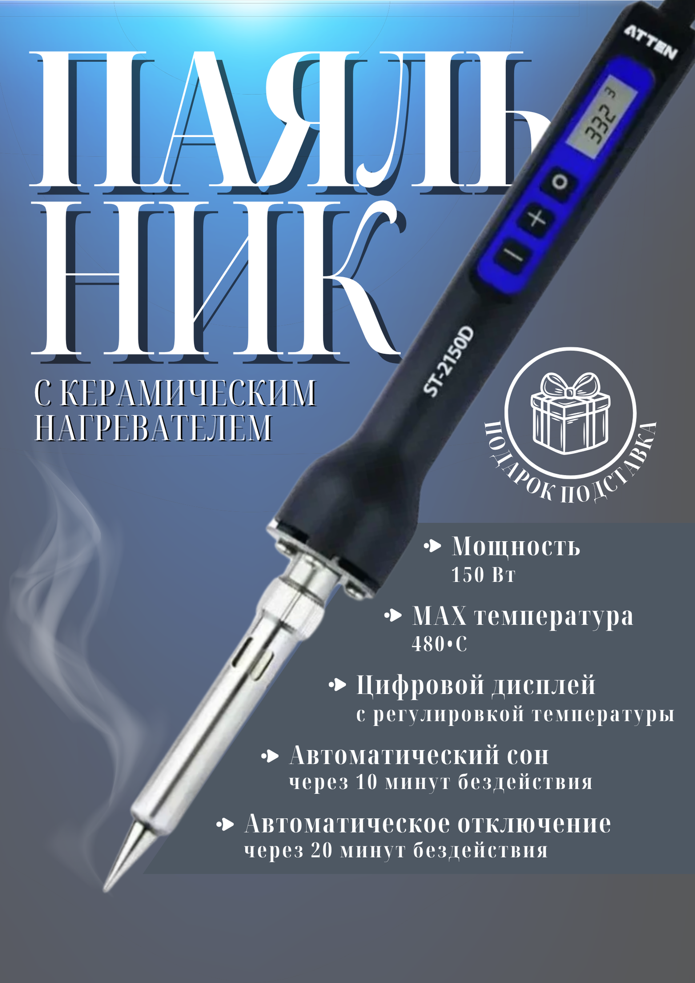 Купить Паяльник ATTEN ST-2150D, электрический, с цифровым дисплеем, керамика, черный с доставкой по всей России. Паяльник ATTEN ST-2150D, электрический, с цифровым дисплеем, керамика, черный: сравнение цен, характеристики, фото, актуальное наличие и цены.