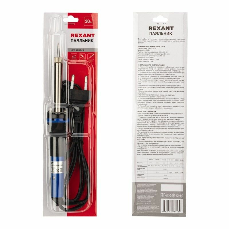 Купить Паяльник долговечное жало, серия мастер, 30Вт, 230В, блистер REXANT с доставкой по всей России. Паяльник долговечное жало, серия мастер, 30Вт, 230В, блистер REXANT: сравнение цен, характеристики, фото, актуальное наличие и цены.