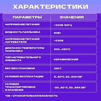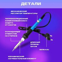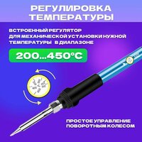 Ищете профессиональный инструмент для пайки? Паяльник с регулировкой температуры нашего бренда - это именно то, что вам нужно! Он поставляется в удобном кейсе комплектом с другими полезными принадлежностями. Набор включает в себя: припой, губку, наконечники разной формы и размера, пинцет, подставку, вакуумный экстрактор и другие полезные предметы. Электропаяльник импульсного типа. Мощный нагревательный элемент способен обеспечить температуру до 480 градусов. Вы сможете подобрать правильную температуру для материала с помощью двух кнопок - регуляторов. Регулируемый нагрев обеспечивает защиту материалов от повреждений. На дисплее рабочего устройства отображается текущая температура жала. Эргономичная ручка модели делает работу удобной и быстрой. Прибор подключается к сети напряжение 220 вольт с помощью встроенного шнура питания со стандартной вилкой. Приспособление универсальное. С помощью этого портативного устройства вы сможете заниматься автомобильным ремонтом, а также чинить бытовые приборы в квартире. Мощности оборудования достаточно для ручной пайки проводов. Ручной паяльник - незаменимый помощник в ремонте телефонов, смартфонов, ноутбуков и другой электроники в домашних условиях. Этот универсальный инструмент - находка как для начинающего, так и для профессионального мастера. Купите ящик с инструментами для пайки в подарок вашему любимому мужчине. Это полезный мужской презент, который прослужит не один год. Особенности паяльника: