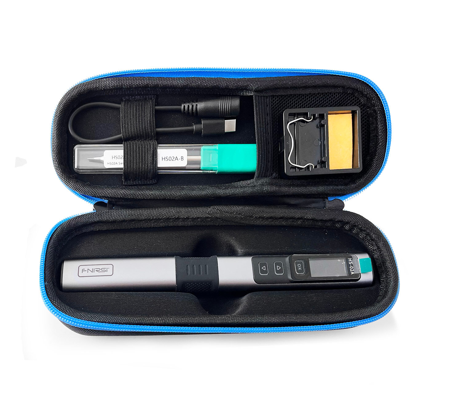 1. Паяльник FNIRSI HS-02A 2. Жало HS02A-B (С245) 3. Подставка 4. Шнур USB Type-C-DC 5. Кейс 6. Инструкция