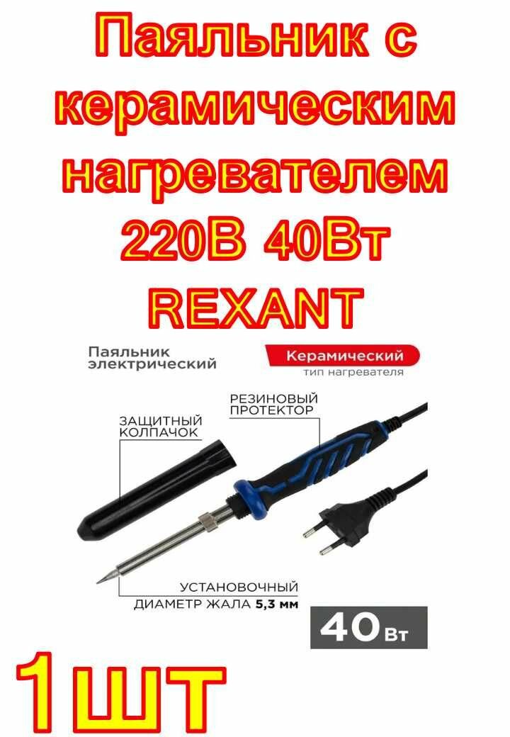 Паяльник с керамическим нагревателем, долговечное жало Профи 220В 40Вт REXANT: сравнение цен, характеристики, фото, актуальное наличие и цены.