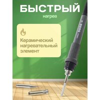 Категория: паяльное оборудование. мощность, Вт 65 жало сменное температура нагрева, °С 200 ~ 480 вес, грамм 560 питание, В 220 тип паяльника электрический тип нагревательного элемента керамический дополнительные характеристики тип сменных жал: hakko 900M, quick 960 сопротивление между заземлителем и наконечником: < 2 Ом; потенциал между заземлителем и наконечником: < 2 мВ; регулирование температуры: ПИД - регулятор; спящий режим: да; дисплей : LED дисплей. длина паяльника, мм 185