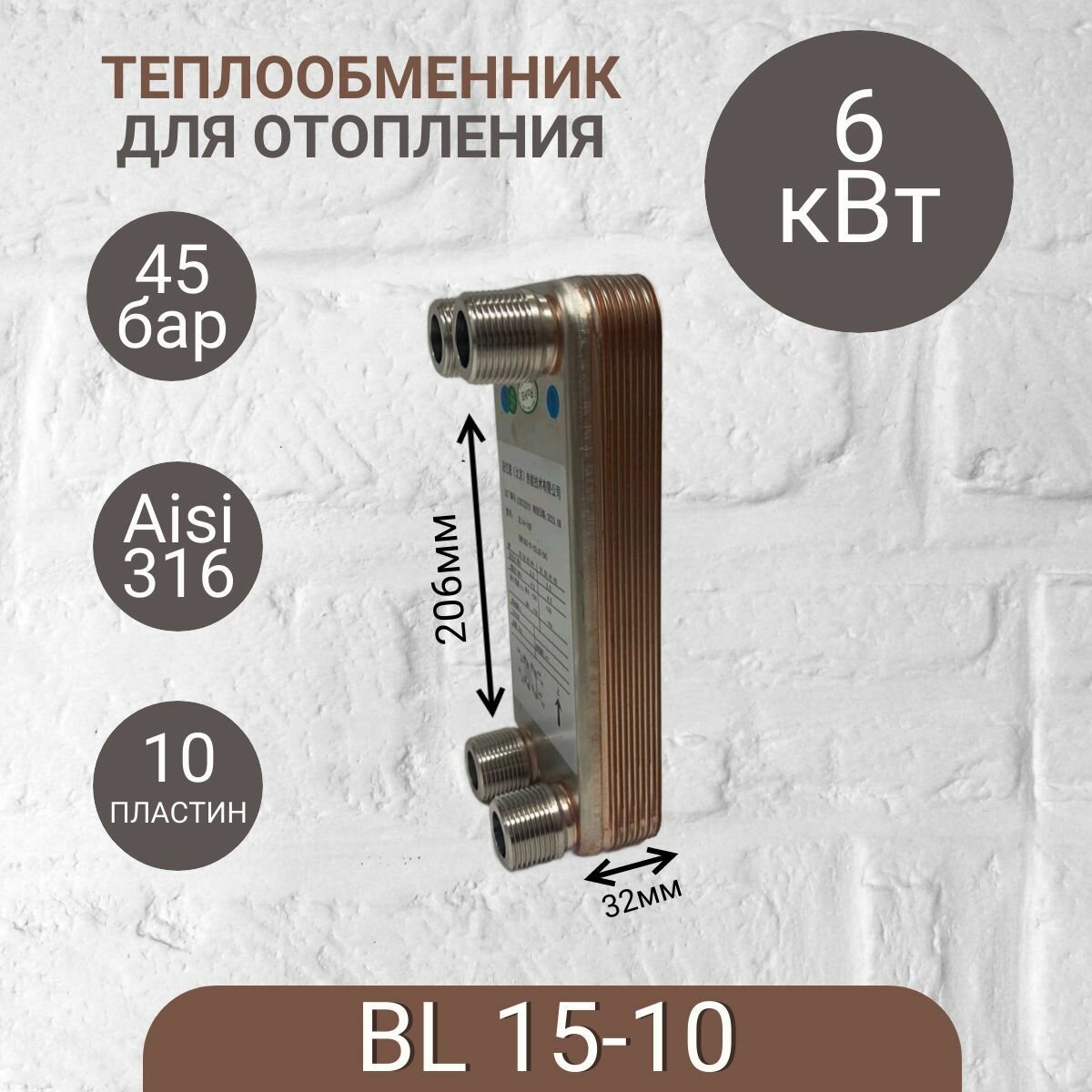 Паяный теплообменник для отопления BL 15-10