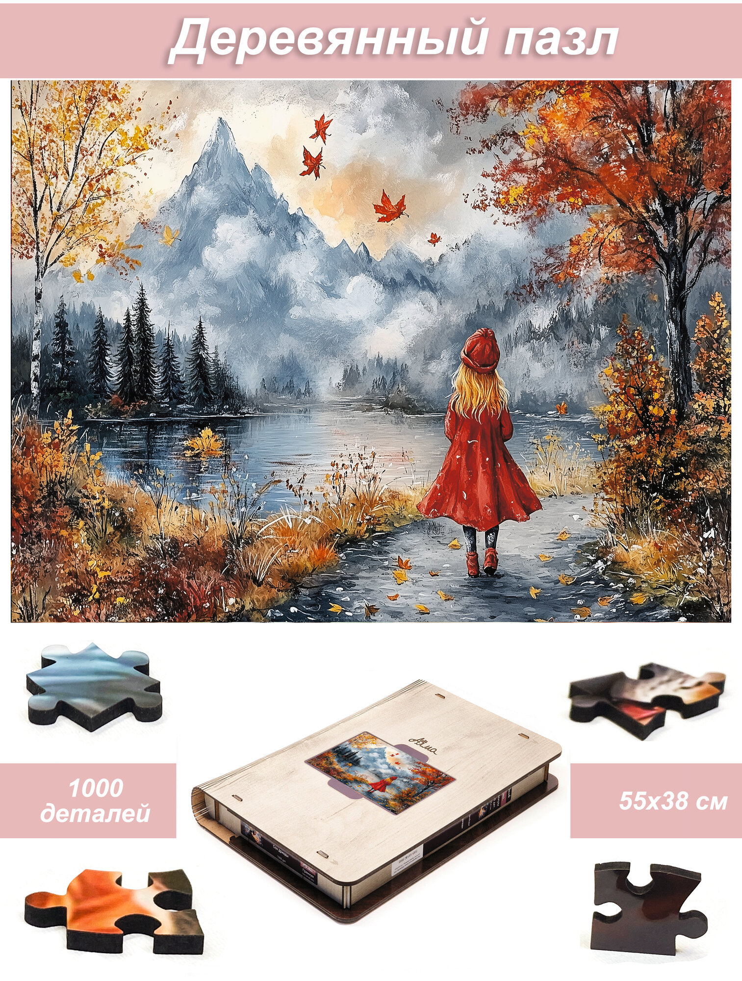 Пазл деревянный Алма премиум 1000 деталей. Волшебство природы. Девочка в красном и горы: сравнение цен, характеристики, фото, актуальное наличие и цены.