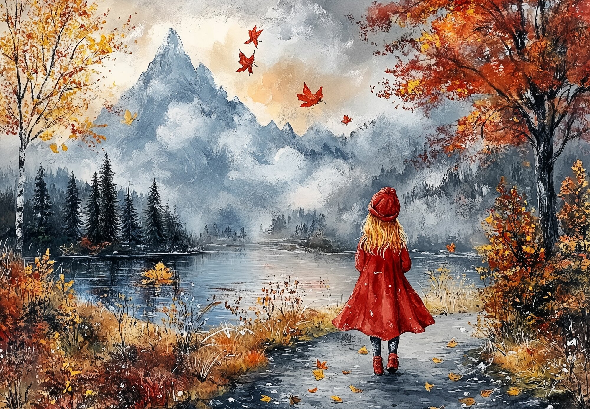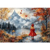 Купить Пазл деревянный Алма премиум 1000 деталей. Волшебство природы. Девочка в красном и горы с доставкой по всей России.
