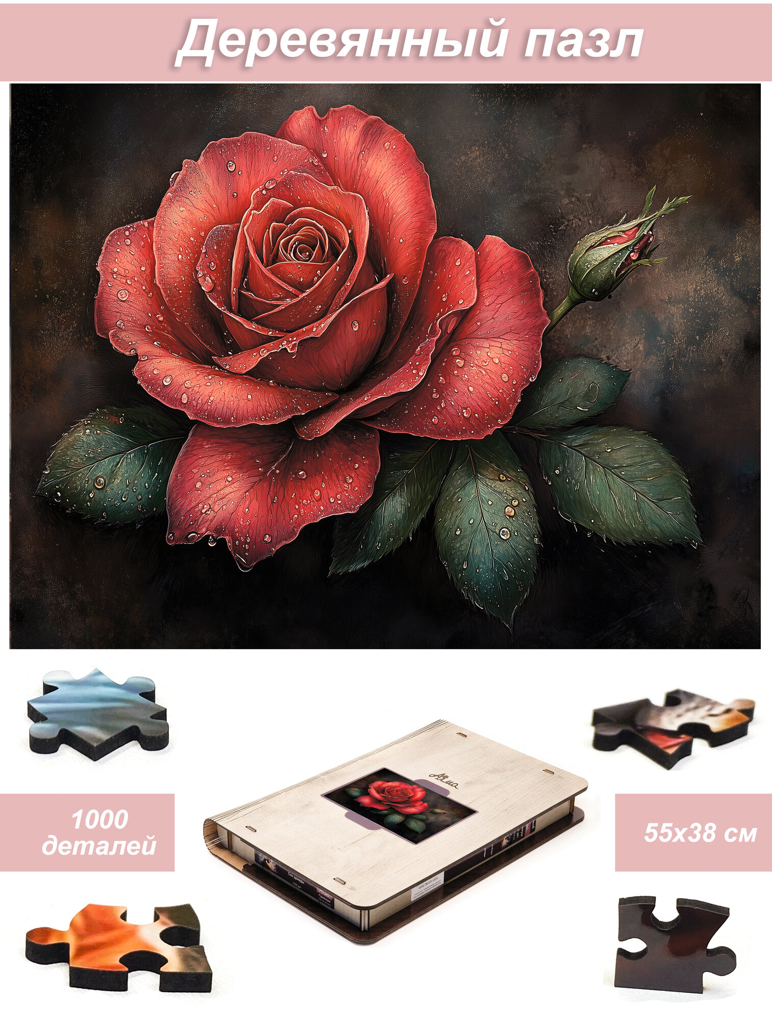 Пазл деревянный для взрослых Алма премиум 1000 деталей. Цветы и натюрморты. Алая роза: сравнение цен, характеристики, фото, актуальное наличие и цены.
