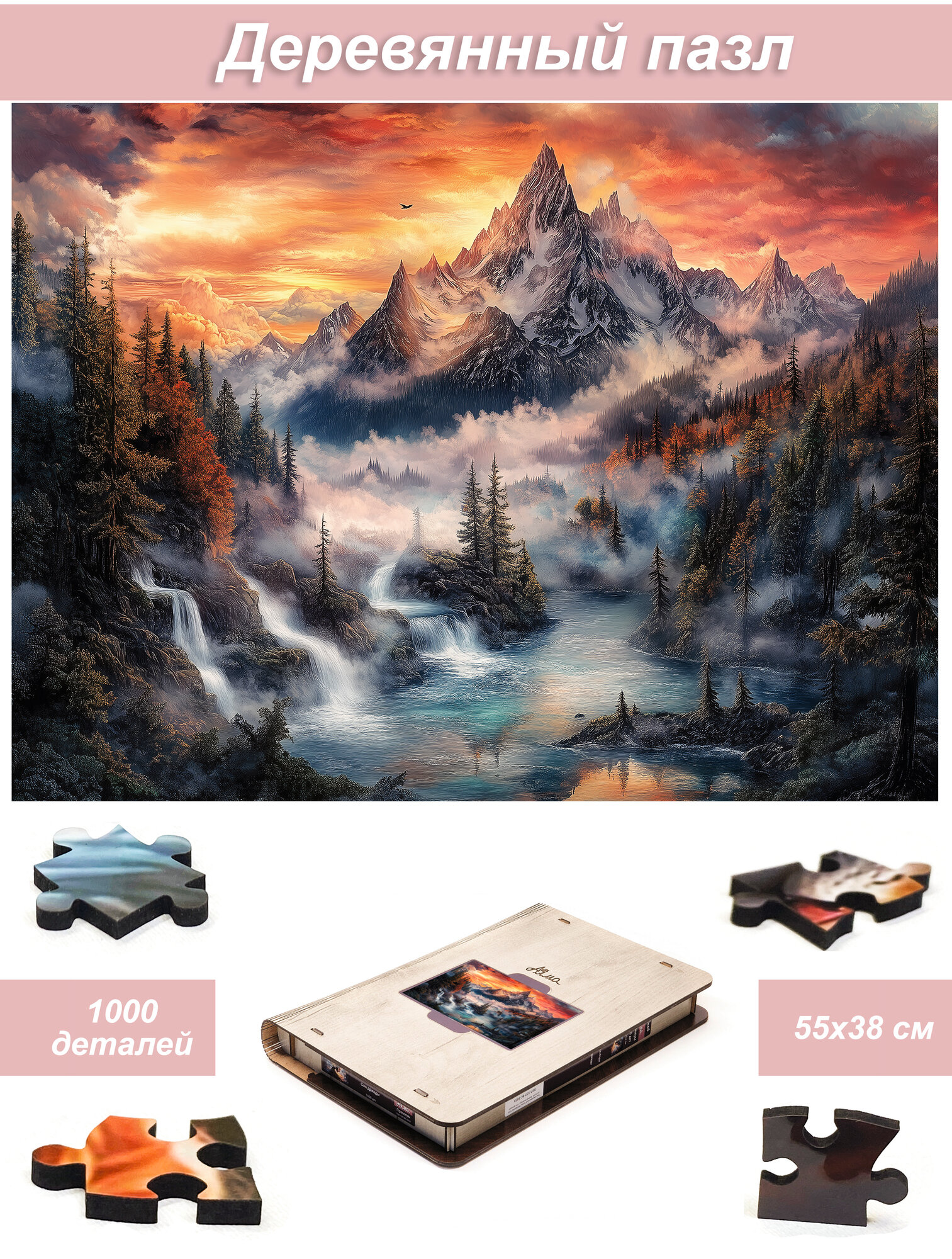 Купить Пазл деревянный для взрослых Алма премиум 1000 деталей. Волшебство природы. Вечерний туман в горах. с доставкой по всей России.
