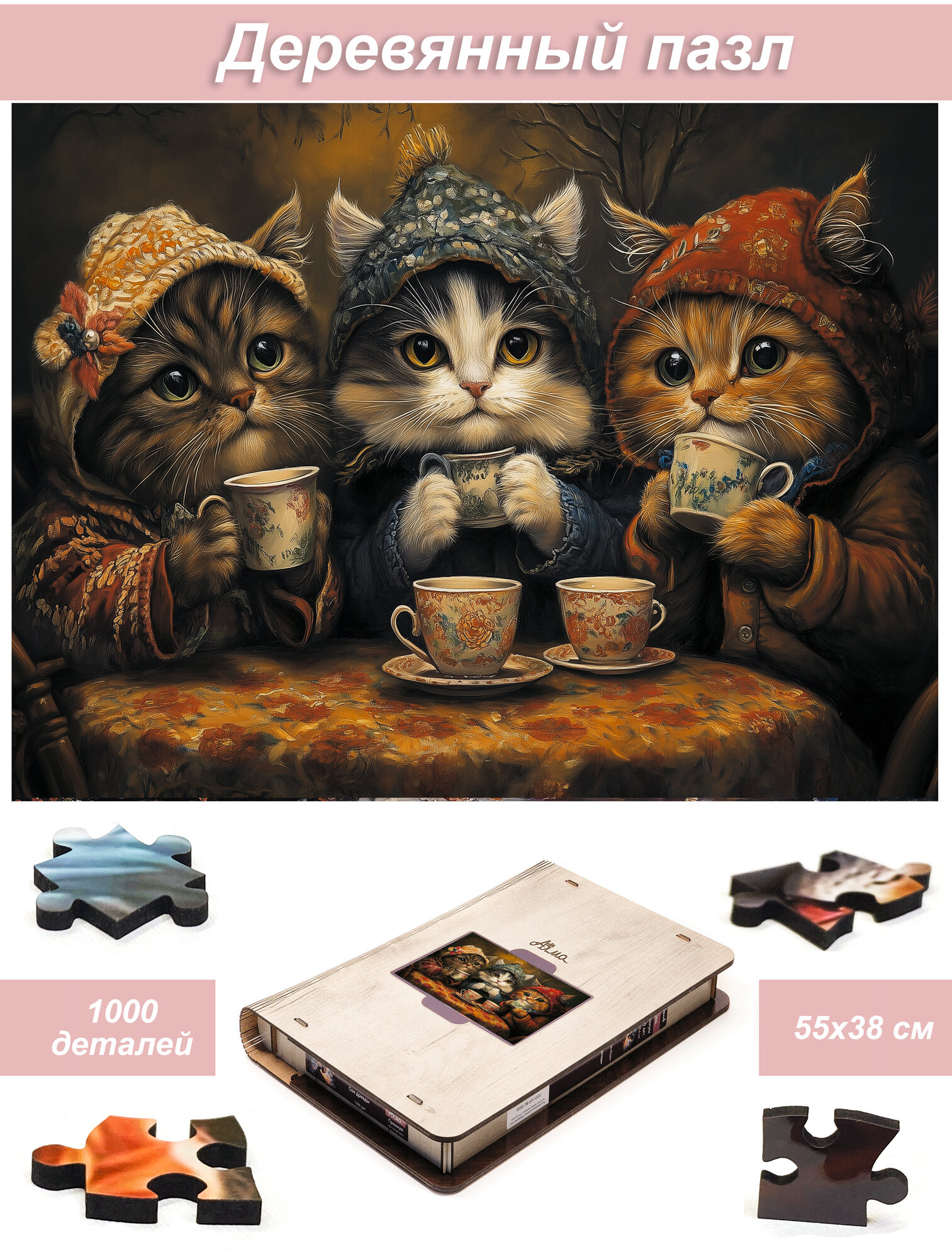 Пазл деревянный для взрослых Алма премиум 1000 деталей. Звери как люди. Кошки, которые любят чай: сравнение цен, характеристики, фото, актуальное наличие и цены.