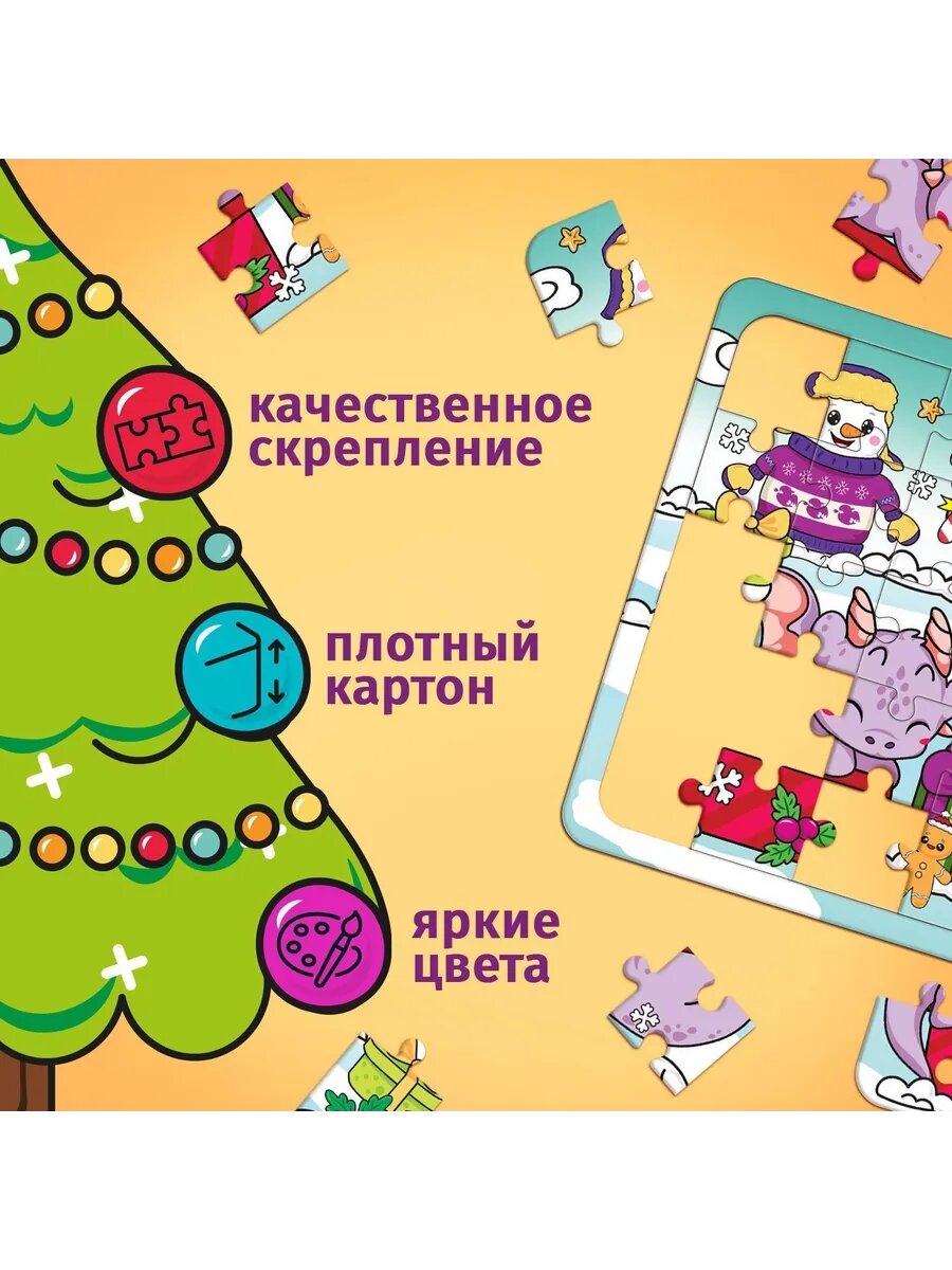 Пазлы с новогодним сюжетом — то, что нужно для полезного и интересного досуга! Такой подарок поможет ребёнку скрасить ожидание праздника и весело провести время.