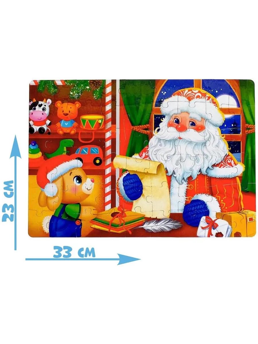 Пол : Унисекс Возраст : От 3 лет Количество элементов : 54 Тематика : Новогодняя Тематика : Детская Тематика праздника : Новый год Тип пазлов : Классические Форма : Прямоугольник Особенности : Без особенностей Состав : Картон, металл Размеры товара : 8.6/4.6/13.1 Пол : Цвет : Материал : Картон