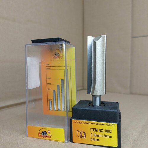 Изделие серии 1003 Глобус. Эффективный и надежный инструмент для выборки пазов прямоугольного сечения в деревянных заготовках и деталях из древесных материалов. Отлично справляется с широким перечнем работ от создания мебельных соединений до декоративного оформления изделий различного вида. Наиболее часто используется на погружных фрезеровальных машин. В обиходе фрезу Глобус 1003 также могут называть «пальчиковой». По способу формирования выборки изделие имеет схожесть с погружной концевой фрезой цилиндрического типа. После фрезерования инструмент образует паз заданной ширины с перпендикулярным по отношению к стенкам расположением дна. Если стоит задача расширить паз, достаточно применить метод смещения инструмента в сторону с увеличением количества подходов. Рабочая часть инструмента имеет (D) диаметр D6, D8, D10, D12, D14, D16, D18, D20, D22, D25 и D30 миллиметров. Так же имеется фрезы диаметром D10x50, D12x50, D14x50, D16x50, D16x25, D18x25, D20x25, D10x40, D12x40, D14x40, D16x40, D18x40, D20x40. Хвостовик S6 мм, S8 мм и S12 мм.