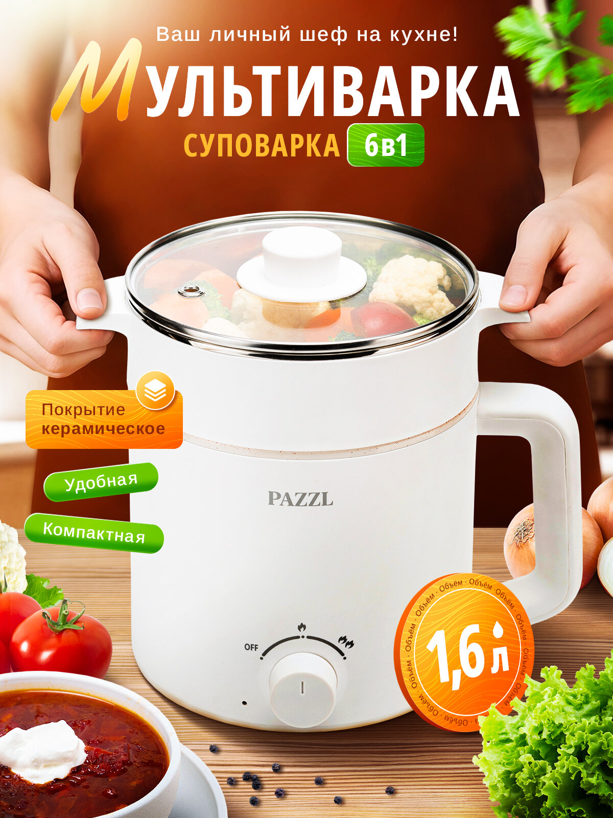 PAZZL Электрическая мультиварка 6 в 1: миниварка, пароварка, электрическая кастрюля, суповарка, яйцеварка, рисоварка: сравнение цен, характеристики, фото, актуальное наличие и цены.