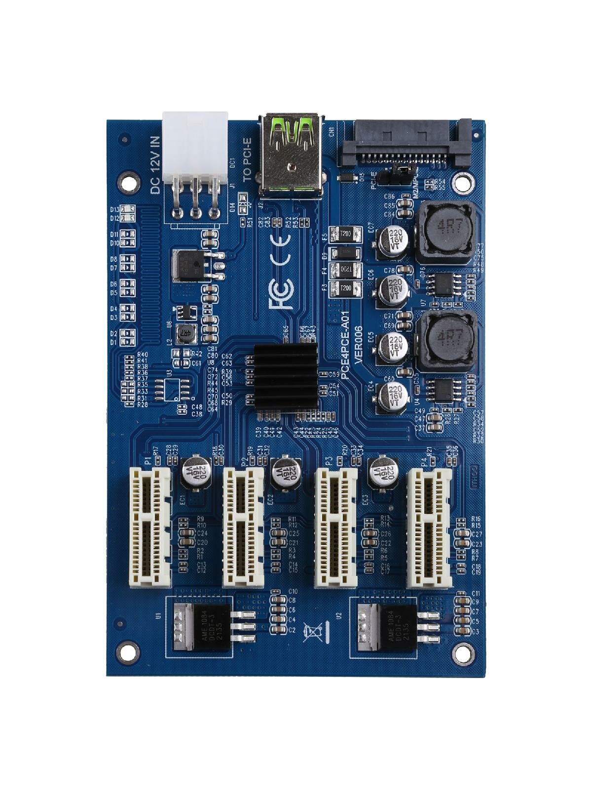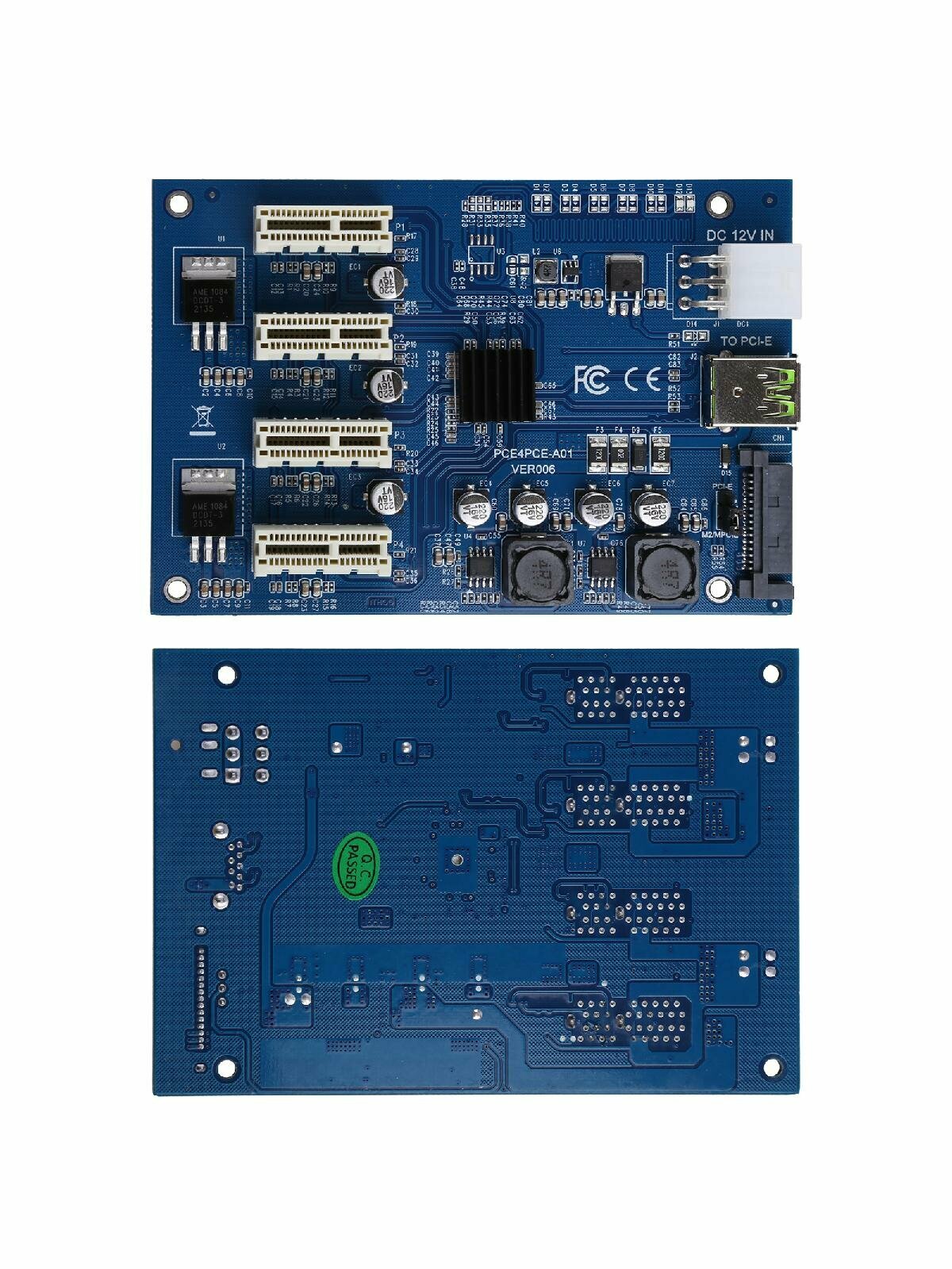 PCIE X1 To 4PCI-E X16 Expansion Kit 1 To 4 Port PCI for Express Switch Multiplier Hub 6pin SATA USB Riser Card for BTC M: сравнение цен, характеристики, фото, актуальное наличие и цены.