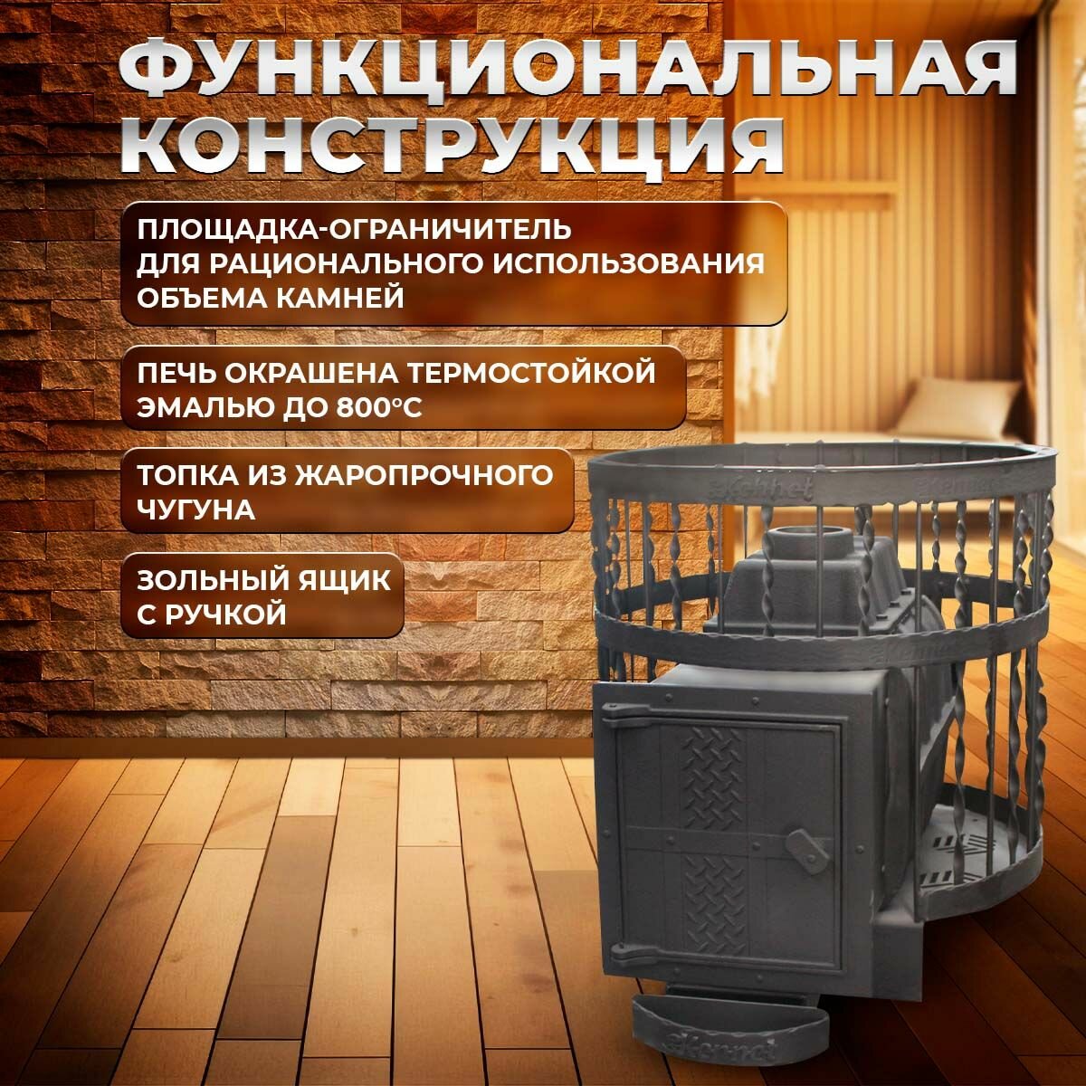 Печь разработана на основании изучения и улучшения отечественных и зарубежных аналогов, собственного опыта производителя и, что самое главное, с учетом рекомендаций и пожеланий многочисленных знатоков и ценителей русской бани.