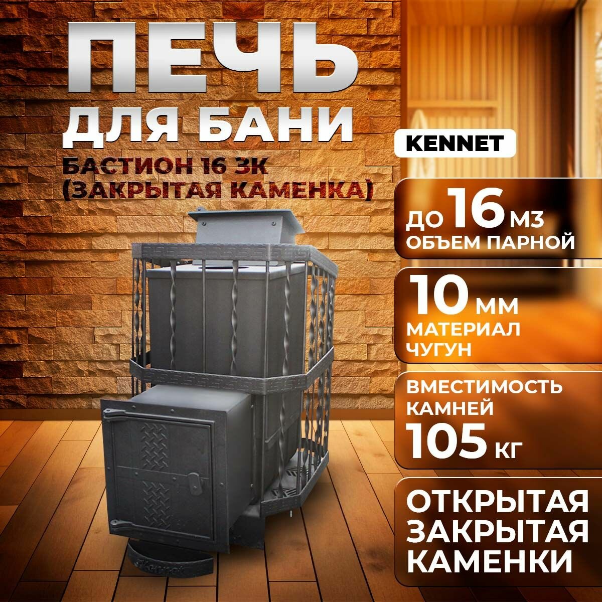 Купить Печь для бани дровяная чугунная Kennet Бастион 16 ЗК с доставкой по всей России.