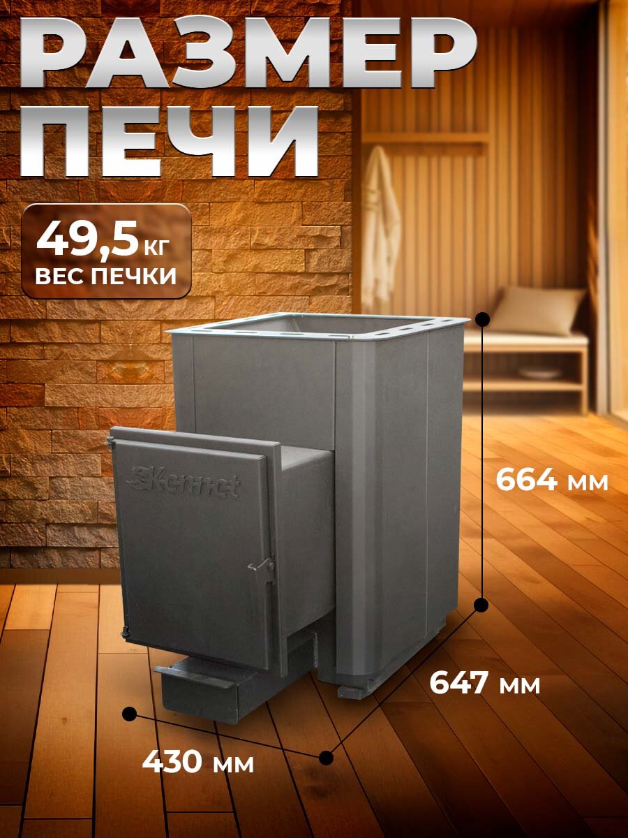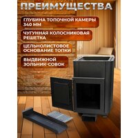 Максимальный вес камней 20 кг, чугунная колосниковая решетка