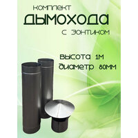 Дымоход длиной 1,5 м входит в комплект, оснащён зонтом для защиты от дождя.