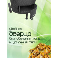 Нижняя дверца для поддува и удаления золы — усиливает тягу и облегчает очистку.