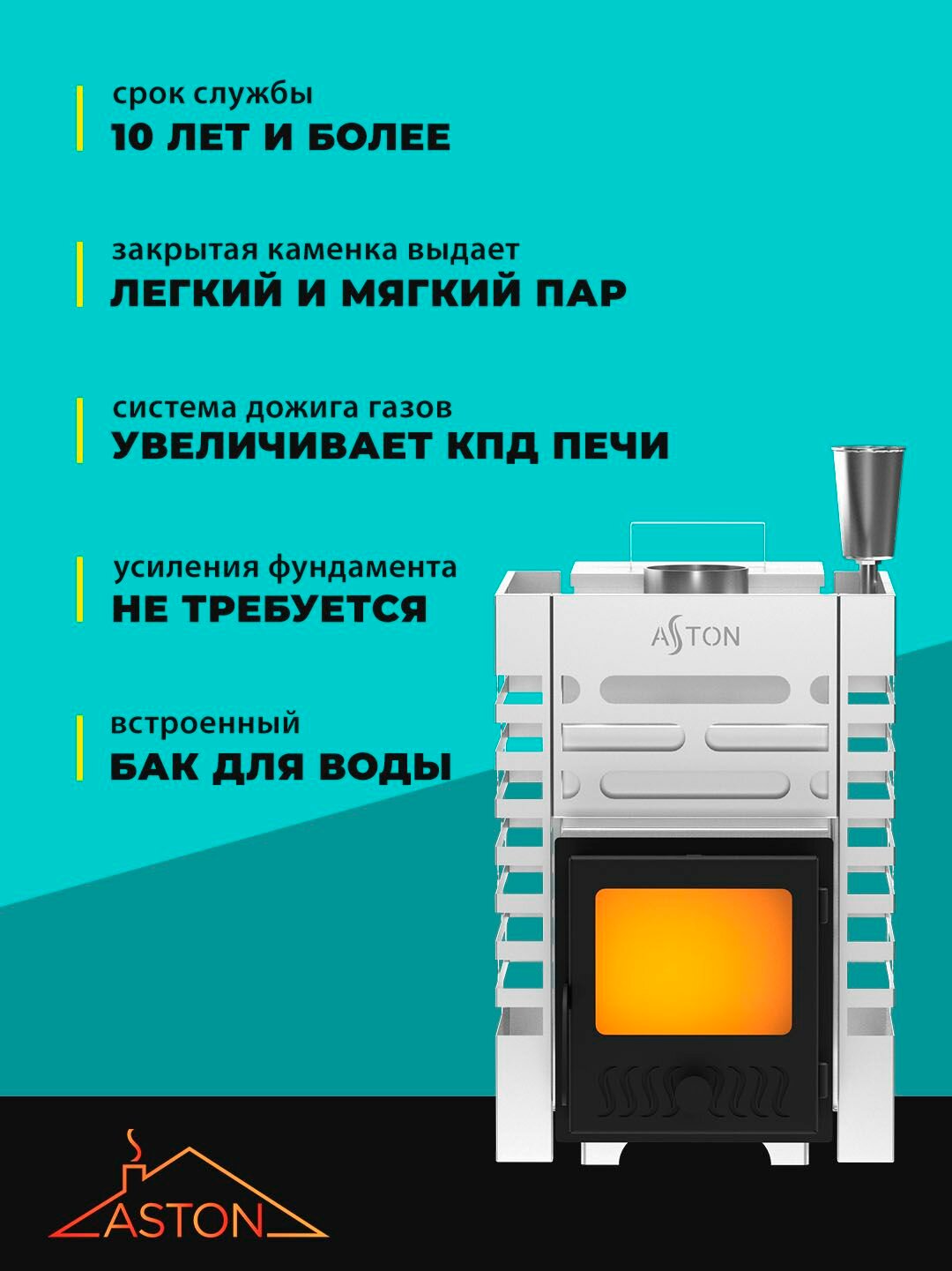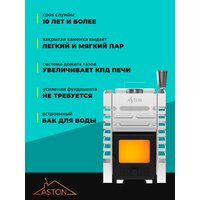Печь для бани ASTON 12 INOX стекло "аква" - высококачественное и функциональное оборудование, предназначенное для использования в банях. Работает на дровах и брикетах, обеспечивая высокую эффективность и экономичность.
