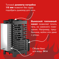Печь для бани дровяная ASTON 20 «аква» диаметр дымохода 115 мм